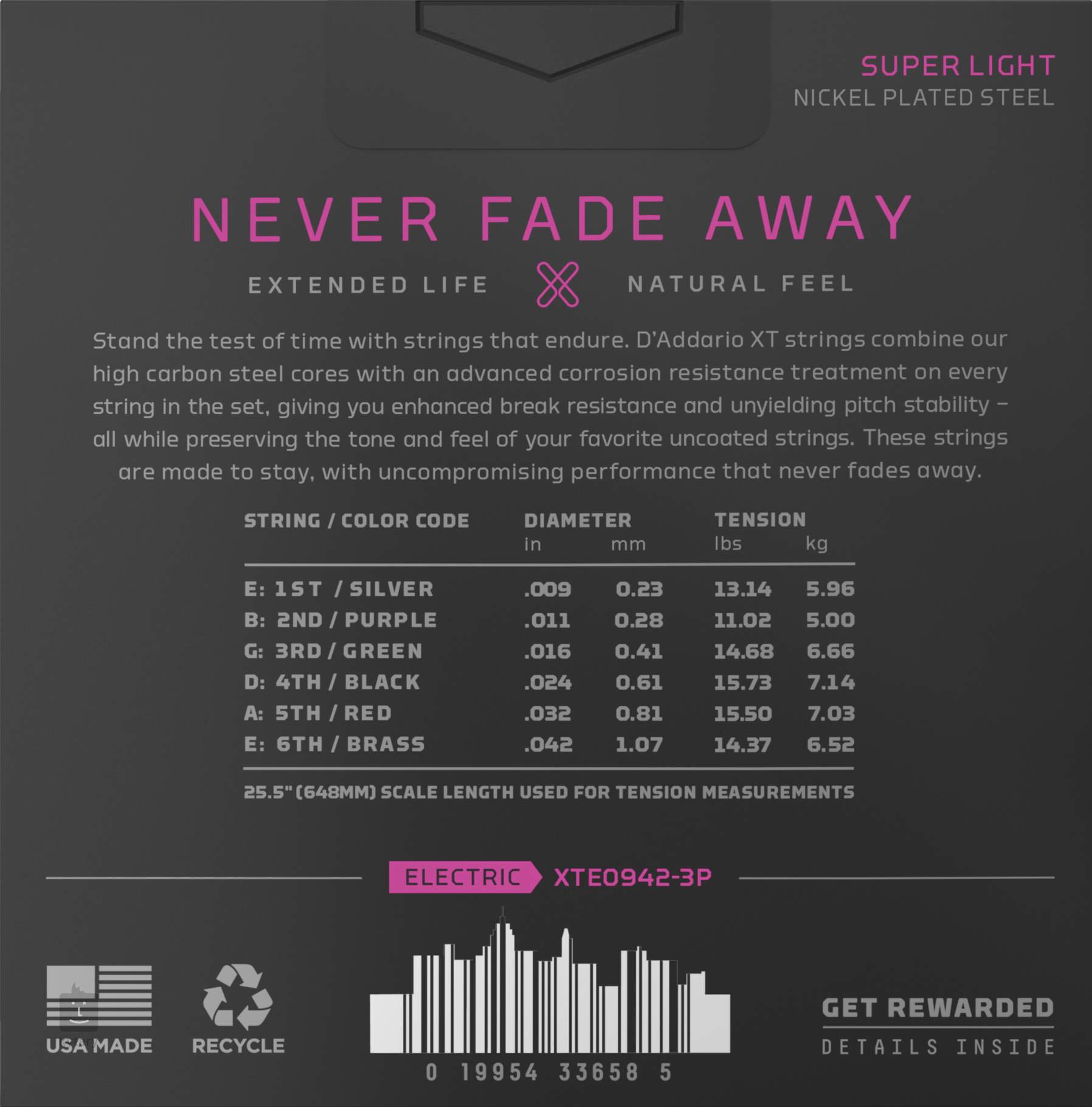 Prémiové struny pro elektrickou kytaru D’addario XT vydrží díky speciálnímu antikoroznímu potahu až čtyřikrát déle než tradiční neošetřené struny, přičemž si zachovávají jasnost zvuku a přirozený pocit ze hry. Jejich základem je šestihranné jádro ze speciální ocelové slitiny NY Steel, která je o 40 % odolnější než běžná ocel, takže se nemusíte obávat častého praskání. Vinutí z poniklované oceli navíc využívá speciální technologie Fusion Twist, díky níž je ladění o 131 % stabilnější než u běžných strun. Výsledkem jsou struny s maximální možnou výdrží, které jsou zároveň výjimečně flexibilní, odolné a precizně ladí. Ideální pro všechny náročné hráče, kteří se spokojí jen s tím nejlepším.
