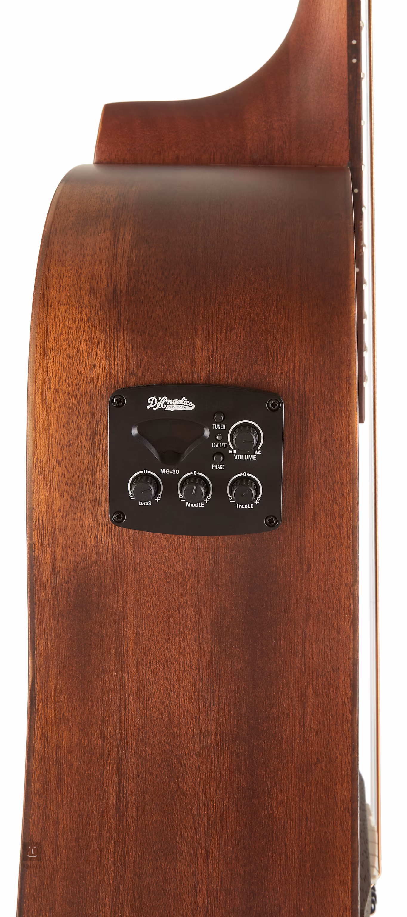 O ozvučení nástroje se stará preamp D’Angelico MG-30 zabudovaný do lubu kytary.