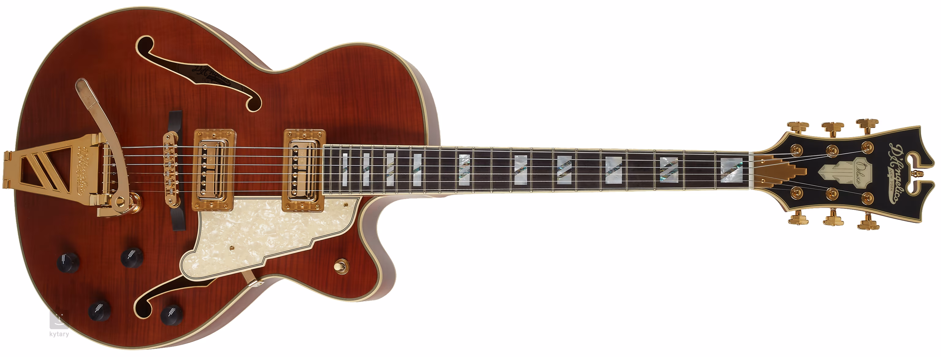 Dva humbuckery TV Jones DA-Tron poskytují lubové kytaře krásně znělý artikulovaný tón, který se díky Push/Pull ovladačům tónové clony s coil-split funkcí dokáže změnit z neučesaně rock & rollového na příjemně vřelý akustický. Tělo kytary vyvažuje typická hlavice v Art Deco designu ozdobená perleťovým firemním logem (Mother-of-Pearl). Stabilitu ladění a rychlou výměnu strun zaručuje jejich ukotvení v uzamykatelných ladících mechanikách Grover, kobylce Roller TOM a tremolu (D'Angelico Shield Tremolo B-30). Stylový vzhled kytary podtrhuje hardware ve zlatém provedení a pětivrstvý pickguard Scalini.