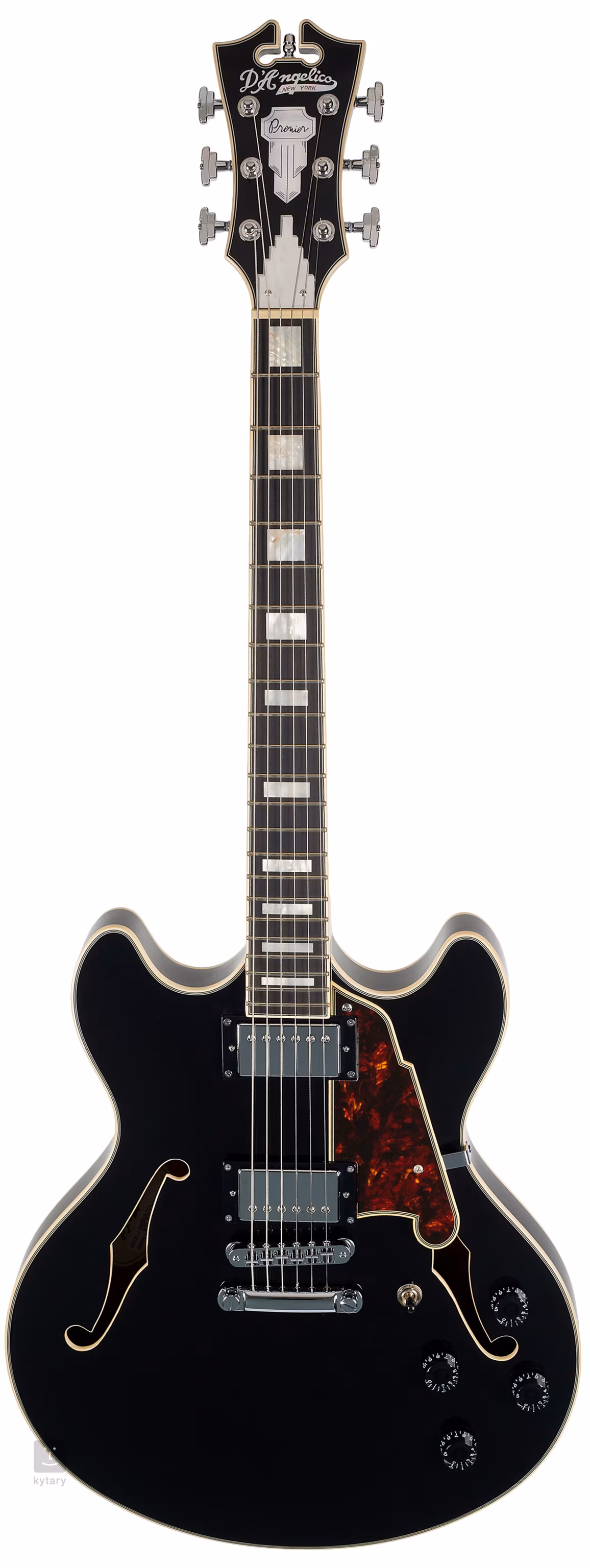 Řada Premier představuje cenově dostupnější nástroje z portfolia firmy D´Angelico, které ovšem splňují veškeré požadavky na kvalitu řemeslného zpracování spojené s touto značkou. Pololubový model DC je odpovědí firmy na rostoucí poptávku po kytarách s dvěma výřezy.