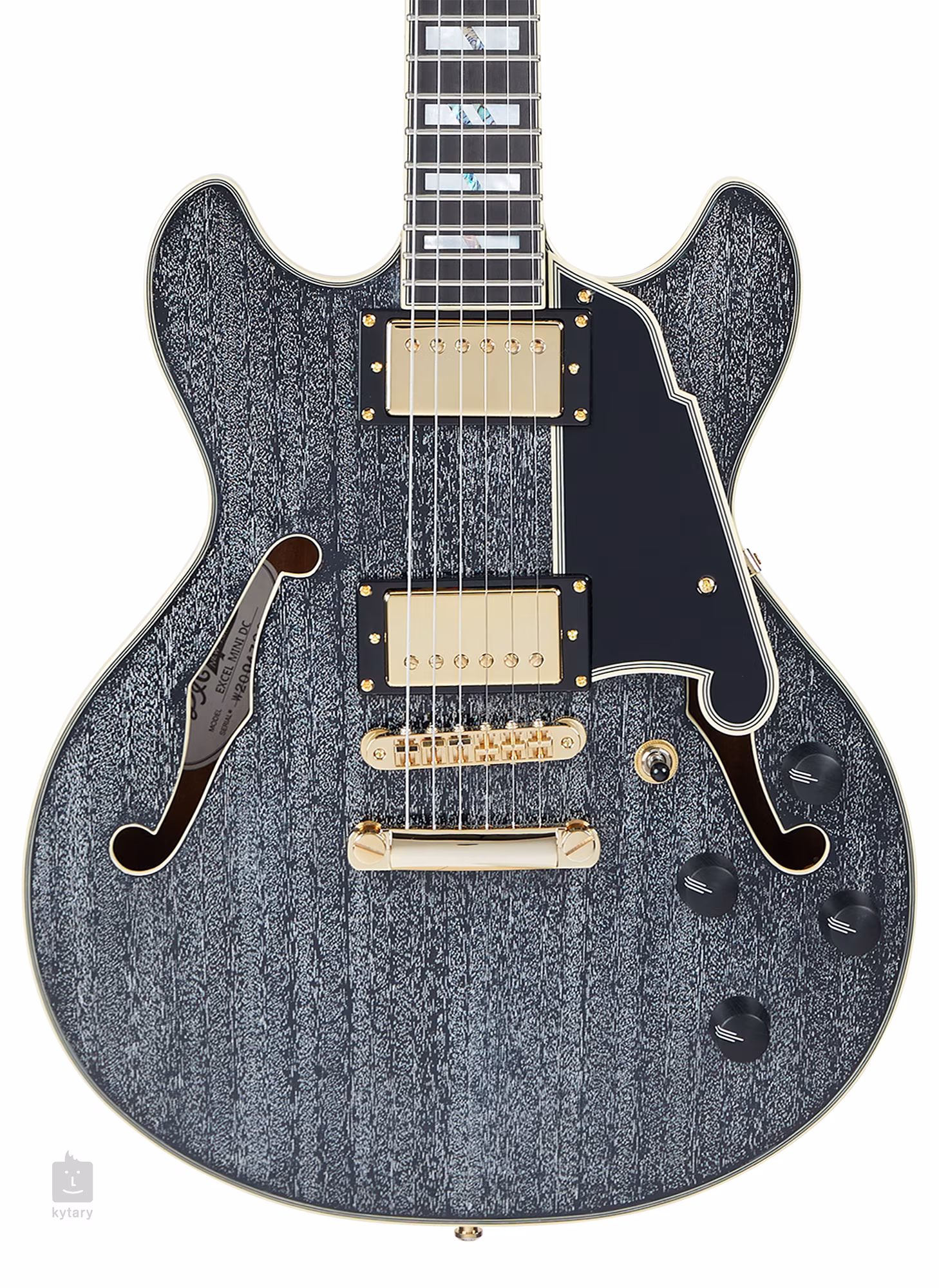 D'Angelico Excel Mini DC Black Dog je pololubová kytara v double-cut designu se zmenšeným tělem (šířka 14 palců – 355 mm). Jistě tak potěší muzikanty, pro které jsou klasické lubovky/pololubovky příliš robustní. Samotné tělo kytary je zhotoveno z laminovaného mahagonu. Středový blok zpevňuje přední desku a potlačuje nežádoucí efekt “vazbení” lubového těla.
