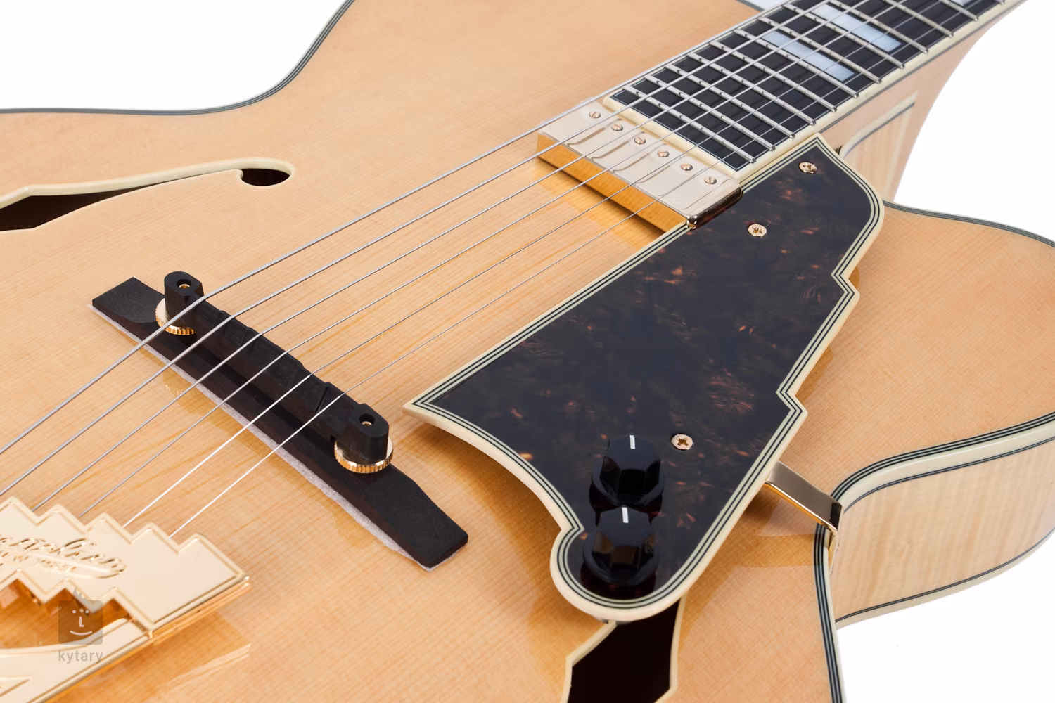 Tělo kytary přesně vyvažuje pro tuto firmu typická hlavice s mechanikami Grover Imperial Super-Rotomatic. Ty díky svému jemnému průběhu umožňují velmi přesné ladění. Na druhé straně prochází struny dřevěnou kobylkou a jsou s uchyceny ve struníku Stairstep. Ten kromě skvělé rezonance nepostrádá ani Art-Deco švih. Hardware je ve zlatém provedení, zaujme také sedmivrstvé lemování nebo želvovinový pickguard.