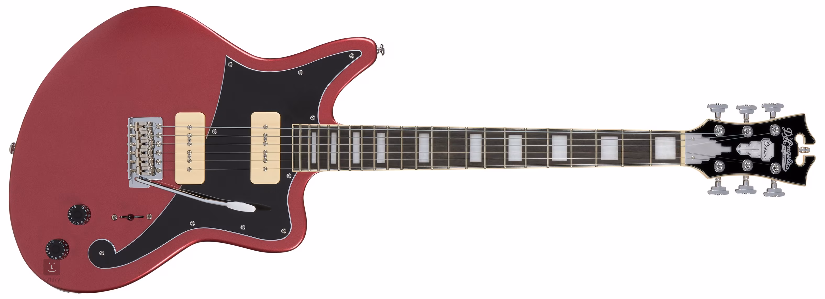 O ozvučení kytary se starají dva Duncan Designed P-90 snímače. Charakter zvuku lze upravit pomocí potenciometrů hlasitosti, tónové clony a třípolohového přepínače snímačů. Struny jsou ukotveny ve stylových ladicích mechanikách Grover 109 Super Rotomatic a tremolu s šestibodovým uchycením. Pěkné zpracování podtrhuje lesklá úprava těla v provedení Oxblood, pětivrstvý pickguard s F-hole designem imitující výřez lubových nástrojů, perleťové logo (Mother-of-Pearl) na hlavici, lemovka těla a hlavy a tradiční Art Deco prvky nástrojů D’Angelico.