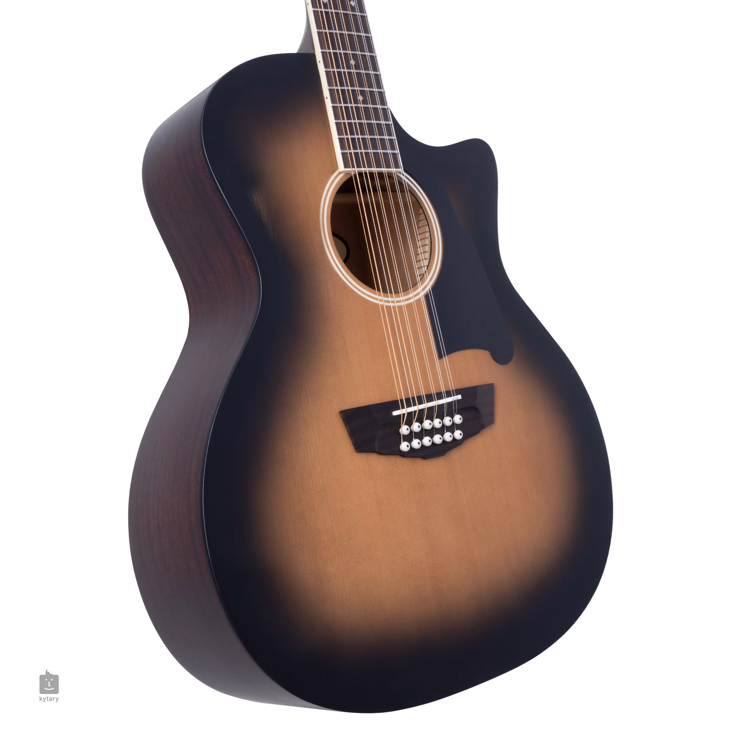 Přední deska kytary PREMIER FULTON Grand Auditorium 12-String CE Aged Burst je zhotovena z masivu smrku, zadní deska a luby jsou vyrobeny z laminovaného sapele. Dobré akustické vlastnosti kytary podporuje snížené X žebrování (Scalloped X). K mahagonovému krku s užším „C“ profilem je přilepen palisandrový hmatník osazený dvaceti pražci velikosti Medium Jumbo. Orientaci na hmatníku usnadňují polohové značky z imitace perleti ve tvaru malých démantů.