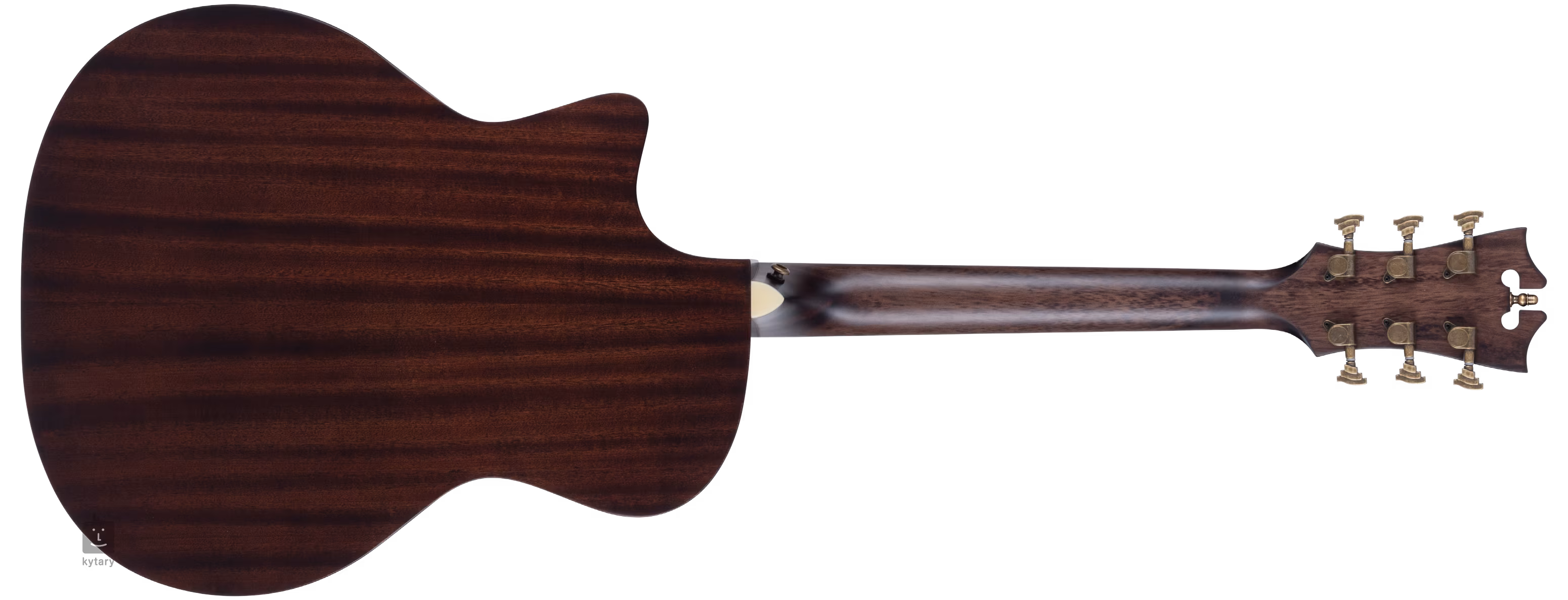 Přední deska kytary PREMIER GRAMERCY Grand Auditorium CE Aged Burst je zhotovena z masivu smrku, zadní deska a luby jsou vyrobeny z laminovaného sapele. Dobré akustické vlastnosti kytary podporuje snížené X žebrování (Scalloped X). K mahagonovému krku s užším „C“ profilem je přilepen palisandrový hmatník osazený dvaceti pražci velikosti Medium Jumbo. Orientaci na hmatníku usnadňují polohové značky z imitace perleti ve tvaru malých démantů.