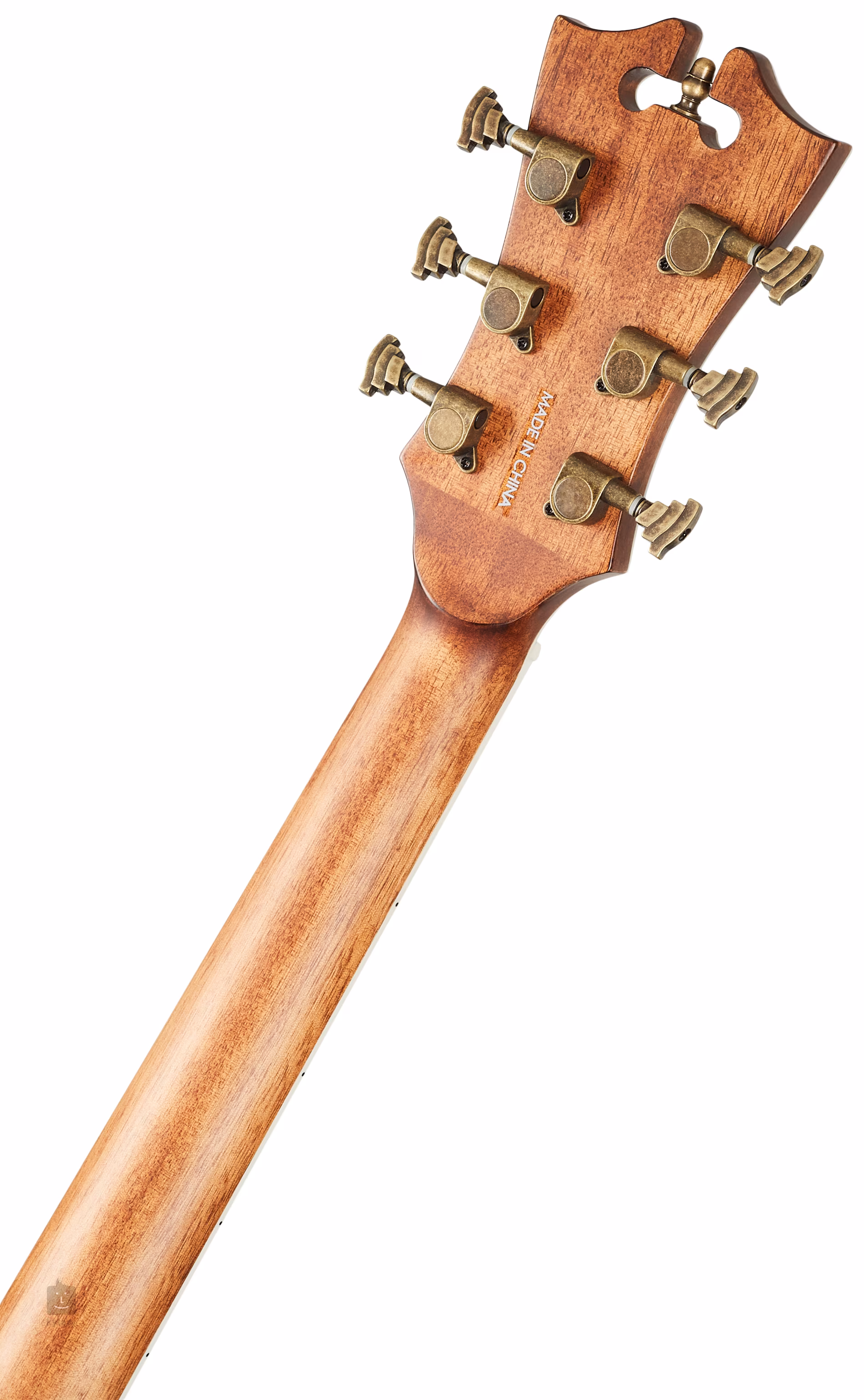 Tělo kytary vyvažuje hlavice v tradičním tvaru nástrojů D´Angelico ozdobená perleťovým firemním logem (Mother-of-Pearl). Struny jsou přes sedlový a nultý pražec z kosti uchyceny v již zmíněných firemních mechanikách v provedení Antique Bronze a kobylce z ovangkolu. Vzhled nástroje zpestřuje rozeta složená z prstenců z perleti (Abalone) a ABS, světlá lemovka těla a hmatníku doplněná černými linkami nebo ebenové kolíčky do kobylky s perleťovými tečkami.