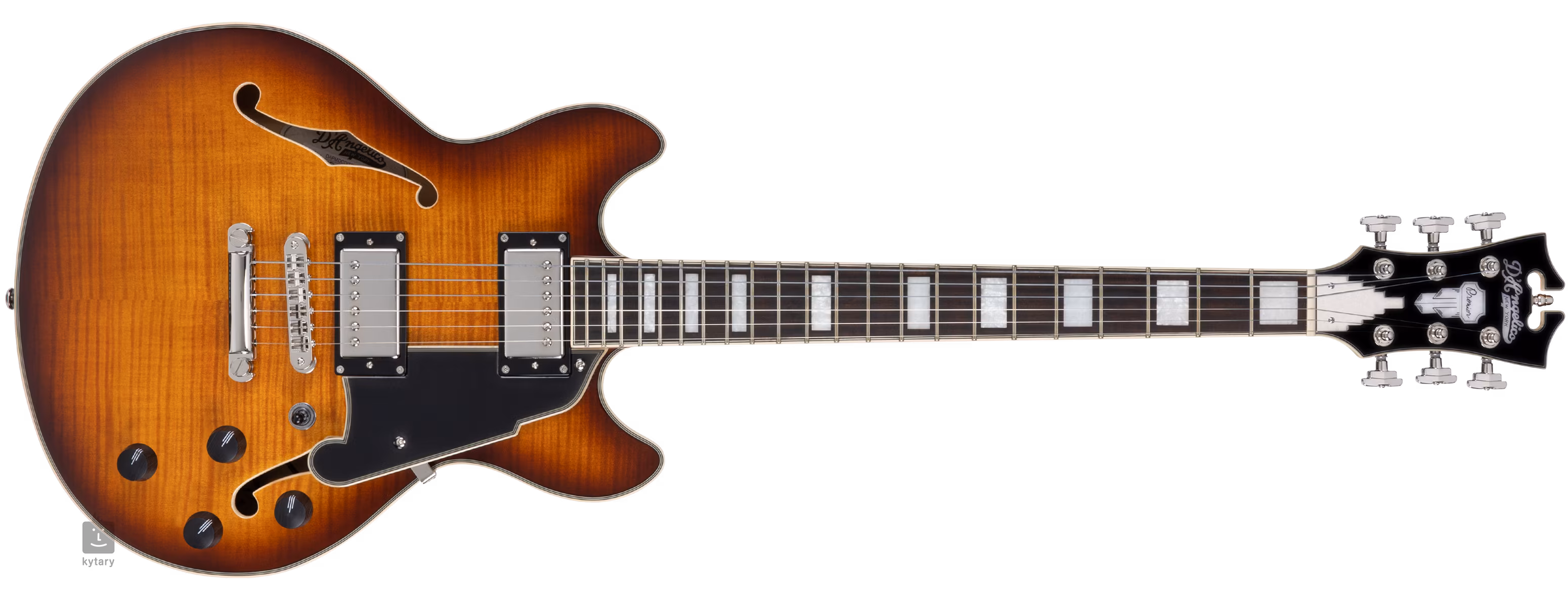 Tělo kytary vyvažuje pro tuto firmu typická hlavice v Art Deco designu ozdobená perleťovým firemním logem a inlayem (Mother-of-Pearl). Stabilní ladění a dobrý sustain zaručuje uchycení strun přes nultý pražec z materiálu Graphtech NuBone XL v mechanikách Grover 109 Super Rotomatic a přes kobylku TOM ve struníku. Stylový vzhled kytary podtrhuje lemovka lemovka těla, hmatníku a hlavy a pětivrstvý pickguard Scalini.