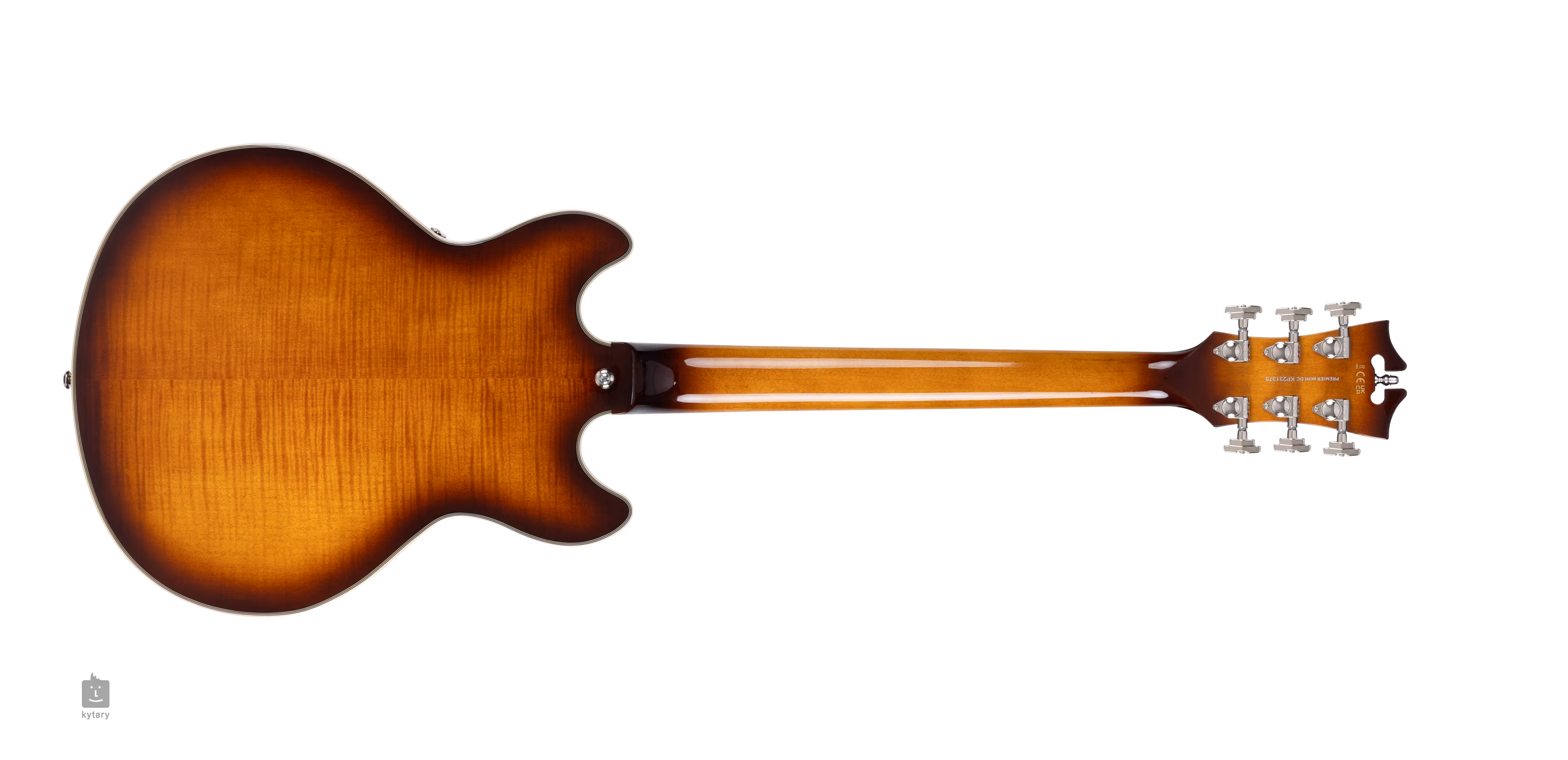 Pololubová konstrukce modelu PREMIER MINI DC Dark Iced Tea Burst je zhotovena z laminovaného fládrovaného javoru. Středový blok zpevňuje přední desku a potlačuje nežádoucí efekt “vazbení” lubového těla. K javorovému krku je přilepen hmatník ze dřeva pau ferro osazený dvaadvaceti pražci velikosti Medium Vintage. Úzký C profil krku zaručuje plynulý pohyb prstů po hmatníku a pohodlný dohmat, orientaci na hmatníku usnadňují polohové bloky z imitace perleti.