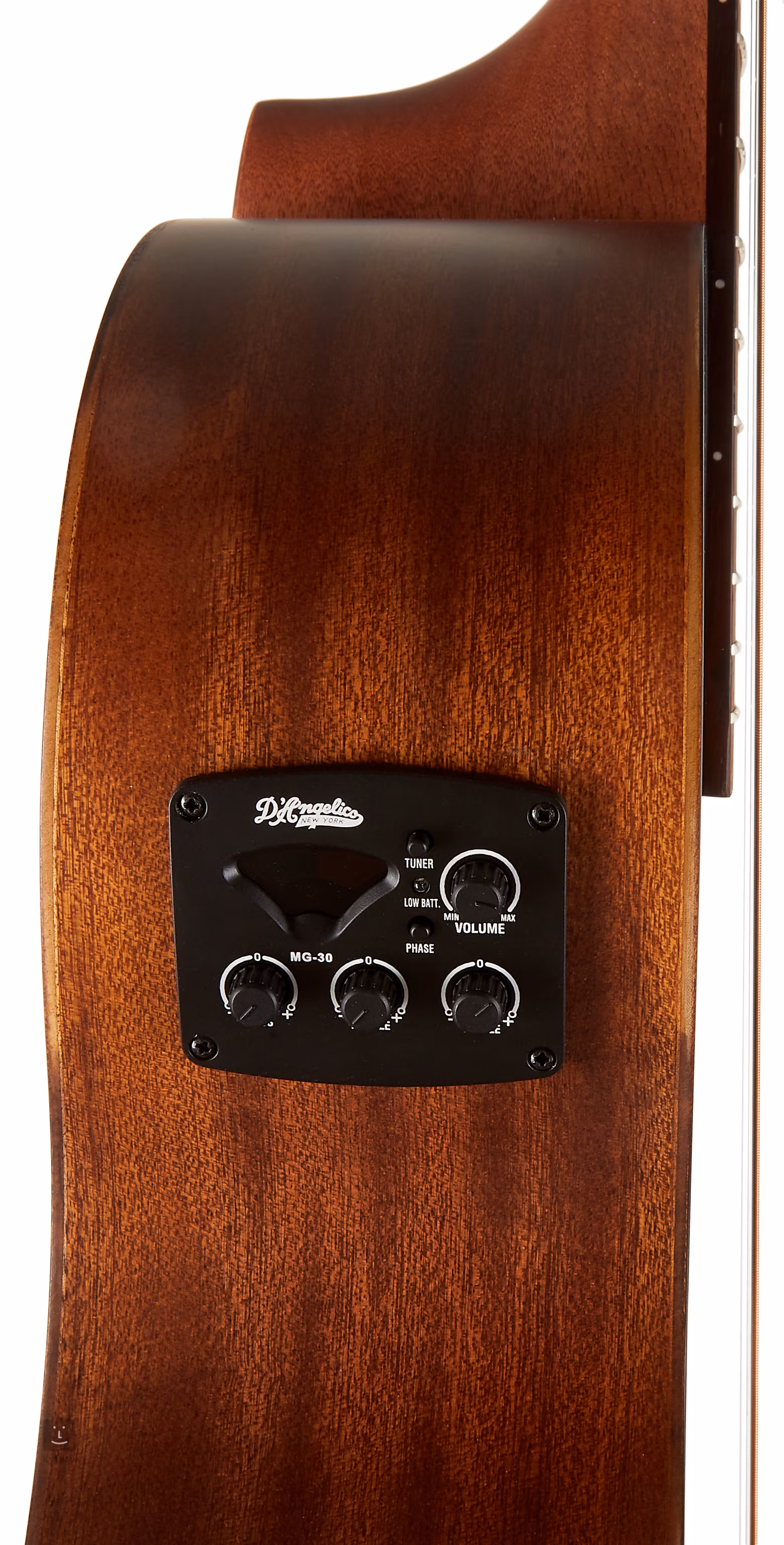 O ozvučení nástroje se stará preamp D’Angelico MG-30 zabudovaný do lubu kytary.