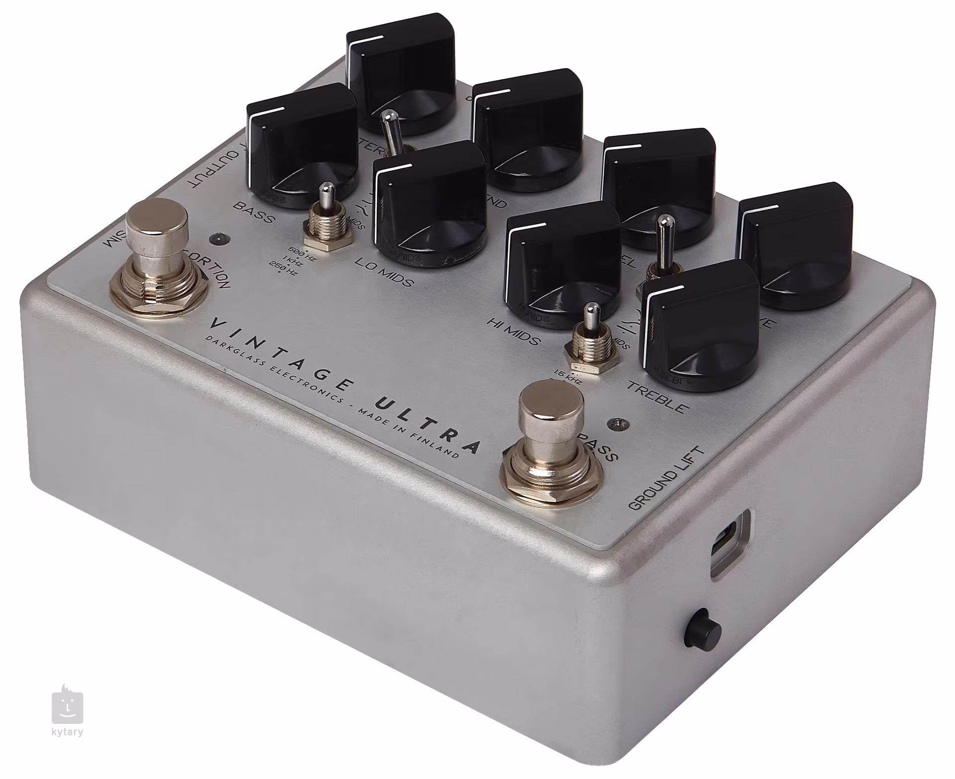 Vintage Ultra rozšiřuje řadu zvukově všestranných basových předzesilovačů firmy Darkglass. Podobně jako jeho starší bráška Microtubes B7K Ultra má Vintage verze k dispozici čtyřpásmové korekce s širokými možnostmi nastavení nižších a vyšších středů a ovladače Attack a Grunt pro kontrolu míry saturace vyšších i basových frekvencí. Samozřejmostí je přímý XLR výstup.