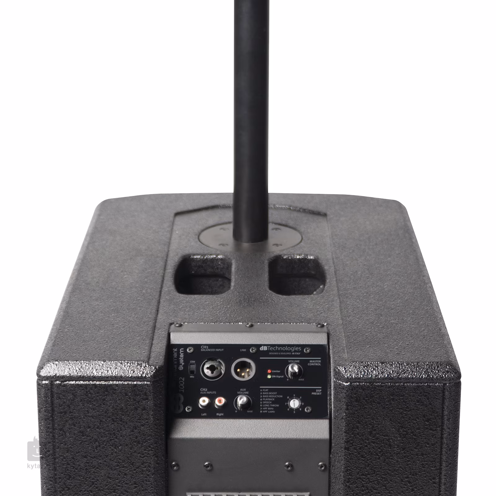 Uvnitř subwooferu se ukrývají dva 12" basové reproduktory, výšková bedna potom nabízí osm 4“ reproduktorů a spolu s Bi-amp zesilovačem třídy D vytvoří možný výkon až 1800W. Výsledkem je brilantní a krystalicky čistý zvuk s precizní kontrolou nad výstupním signálem. Zadní strana disponuje kombi XLR/TRS vstupem a stereo RCA vstupem se separátními ovladači hlasitosti. Naleznete zde také XLR výstup pro zapojení do dalšího PA, Speakon pro připojení výškové bedny a přepínač osmi továrních EQ presetů pro co největší flexibilitu reproduktoru.