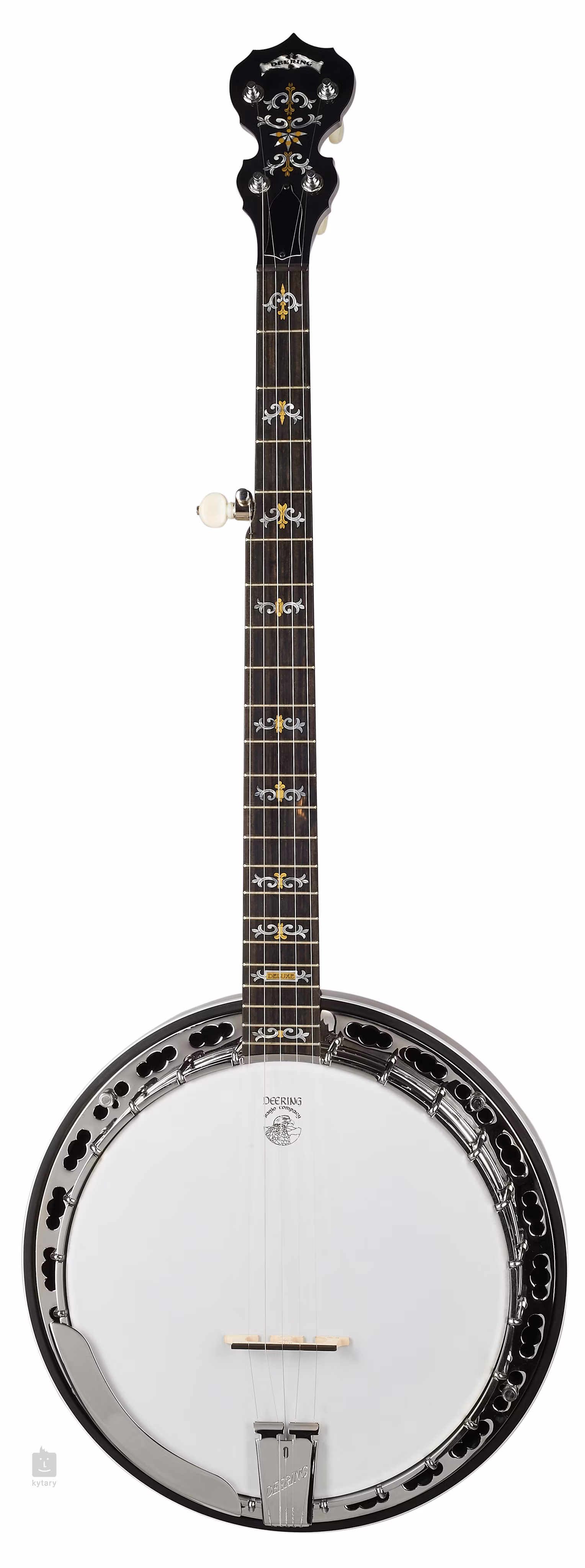 Pětistrunné banjo Deering Deluxe patří již po několik dekád k neoblíbenějším profesionálním modelům z nabídky značky. Jedná se o resonátor, tj. má na zadní straně klenutý kryt ze dřeva ořechu s lesklou povrchovou úpravou, který obtéká bílá lemovka s černými linkami. Ke korpusu ze tří vrstev javoru (violin grade) přiléhá tone-ring ze zvonoviny (bell brass), tj. velmi tvrdého bronzu. K němu je mosazným ráfkem uchycena jedenáctipalcová blána.