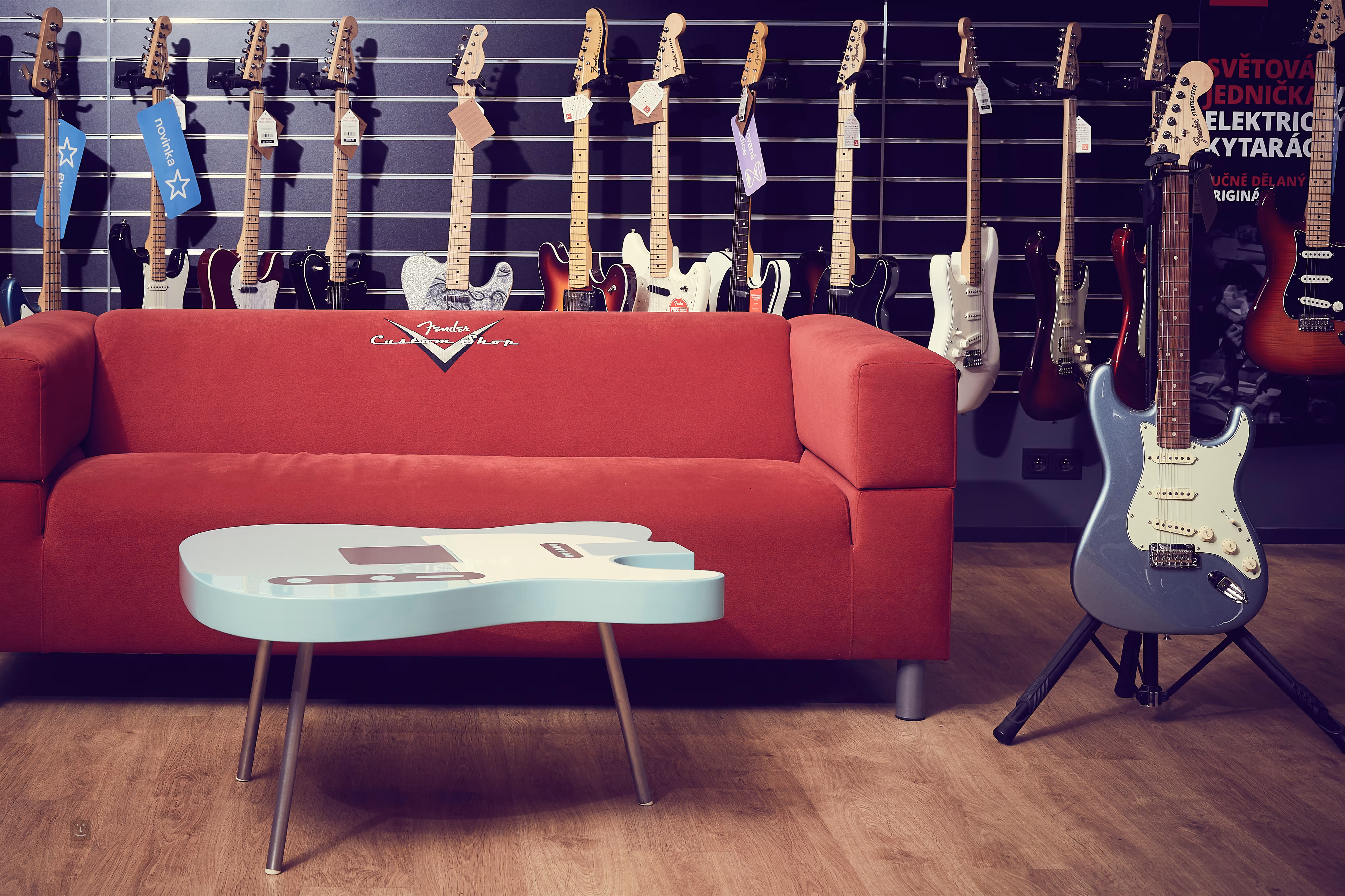 Tak tohle v obchodech s nábytkem na Zličíně ani Černém mostě nenajdete. Vylepšete si své oblíbené místo konferenčním stolkem ve tvaru legendární kytary, který vám budou všichni spoluhráči z kapely závidět. Tento poctivý kus nábytku byl ručně vyroben v České republice a jeho barevná verze v lesklém laku se jistě stane přirozeným středobodem vašeho pokoje.