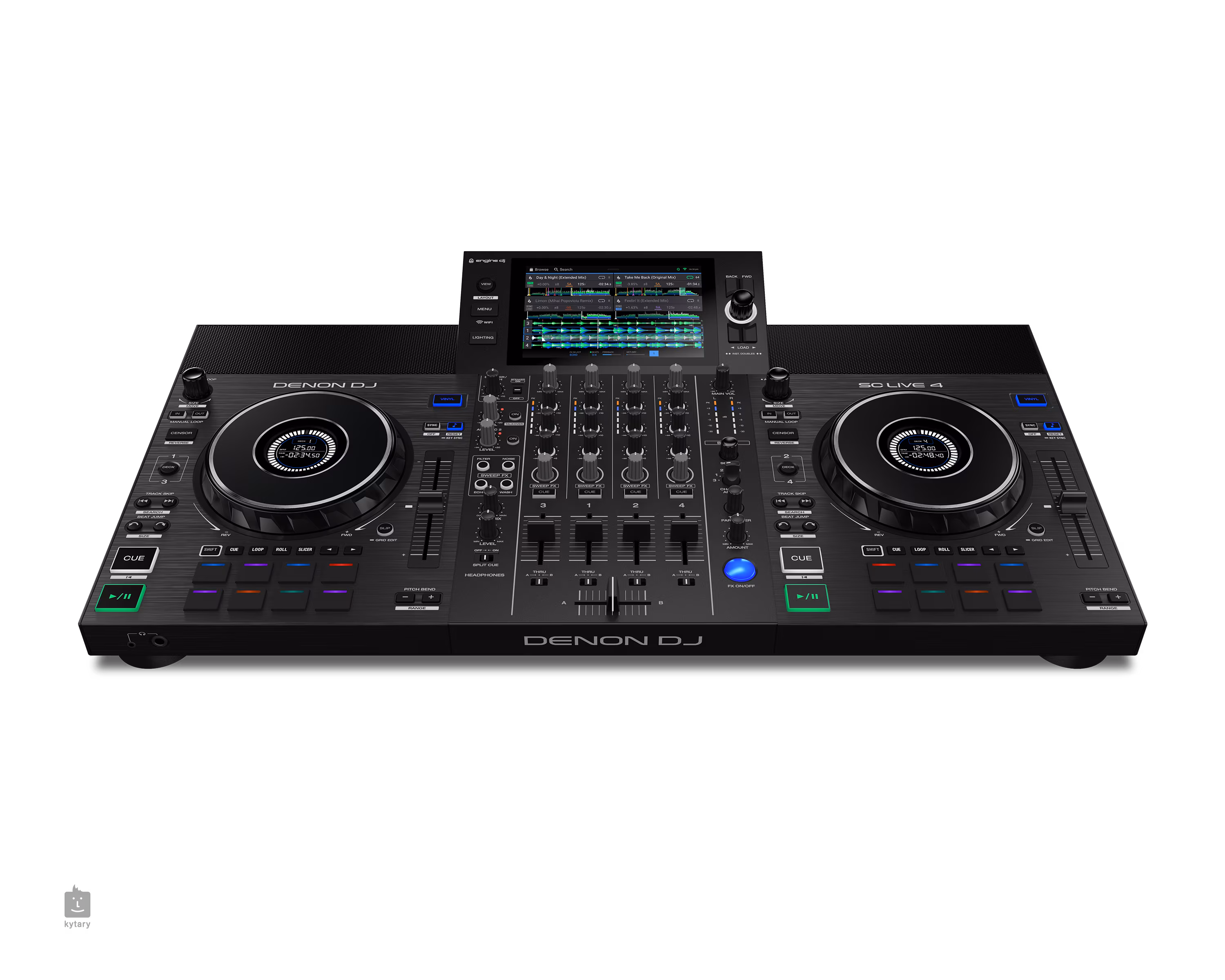 K dispozici je 7" barevný multi-touch displej pro rychlou navigaci a práci s tracky, tři vstupy pro externí média (USB a SD karta) a možnost propojení s osobním cloudem přes Dropbox. Funkce Computer Mode umožňuje využít SC LIVE 4 také jako profesionální kontroler pro Serato DJ Pro (licence v ceně) nebo Virtual DJ (samostatná licence). DJové ocení také dedikovanou FX sekci s 13 BPM efekty, Sweep FX na každém kanálu a rychlý přístup k jednotlivým deckům pomocí Layer tlačítek.