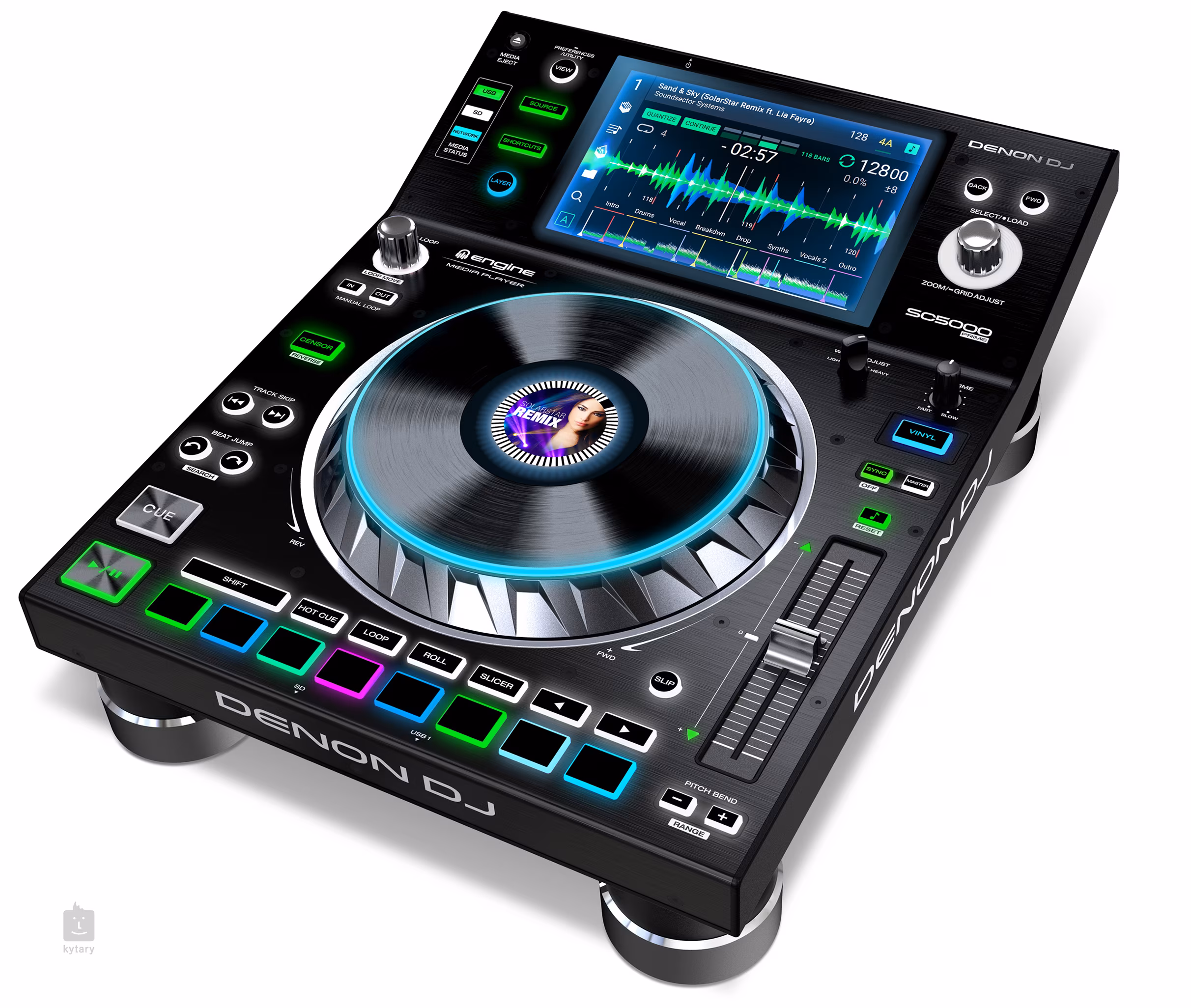SC5000 Prime je profesionální přehrávač osazený 7 palcovým multi-dotykovým displejem ve vysokém rozlišení. Přehledné rozložení funkcí umožňuje rychlou a snadnou orientaci v systému složek a v ovládání celého zařízení. Dotyková navigace, nahrávání a přehrávání je absolutně bez latence. Otočný ovladač pro detailnější navigaci je umístěný hned vedle displeje. Masivní 8 palcový jog wheel lemuje regulovatelné RGB podsvícení, do jeho středu je vsazený LCD displej, který zobrazuje pozici během přehrávání a vizuál alba. Řada 8 podsvícených multifunkčních padů umístěných níže je tím hlavní prostředkem pro vaši tvorbu během živého vystoupení. K padům lze přiřadit vybrané smyčky, cue pointy, slices a rolovací přechody, které drží tempo díky neuvěřitelně přesnému beatgridu. Upravovat je můžete i v průběhu hraní. Pitch fader s přesností 100 mm umožňuje regulaci rychlosti +/- 50 %. Další předností je inovativní zavedení druhé audio vrstvy s vlastním audio výstupem. Zachovává si samozřejmě stejné možnosti ovládání a funkcí jako vrstva první. Tlačítkem Layer určíte, která vrstva bude aktivní.