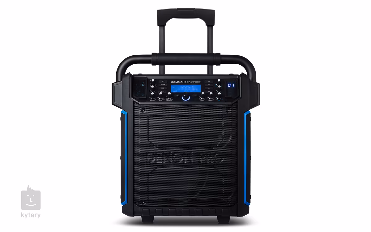 Denon Pro Commander Sport je vodotěsný, kompaktní přenosný PA systém, který je napájen integrovanou nabíjecí baterií nebo ze sítě. Díky IPX54 certifikaci je možné tento reprobox používat u bazénů, aquaparků a samozřejmě také kdekoliv venku. Obsahem balení je bezdrátový UHF mikrofon, streamování zvukového obsahu je probíhá skrze Bluetooth rozhraní, na zadním panelu nalezneme také USB a slot na SD karty. Pro klasické drátové mikrofony je zde kombinovaný XLR/Jack konektor, Aerobic studia ocení ovládání rychlosti přehrávání.