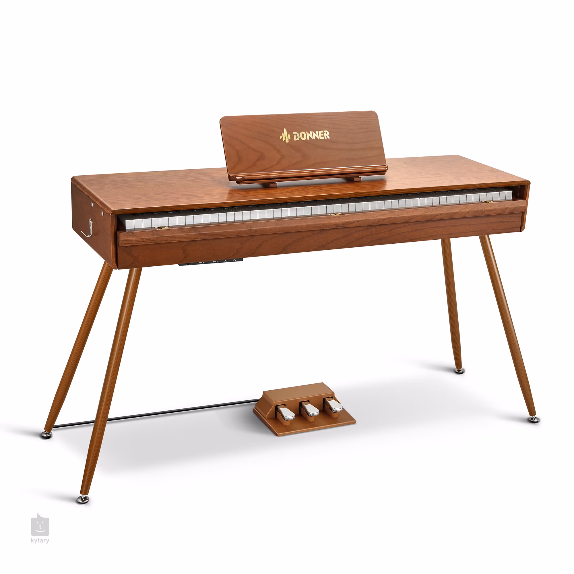Piano má přirozenou barvu světlého dřeva a obsahuje sadu tří pedálů ve stejné barvě. Díky kompaktním rozměrům a nízké hloubce klaviatury se jedná o nástroj ideální i do menších prostor. Součástí balení je také napájecí adaptér a stojanové nohy. Pokud hledáte kvalitní digitální piano pro začínajícího hráče, s tímto modelem neuděláte chybu.