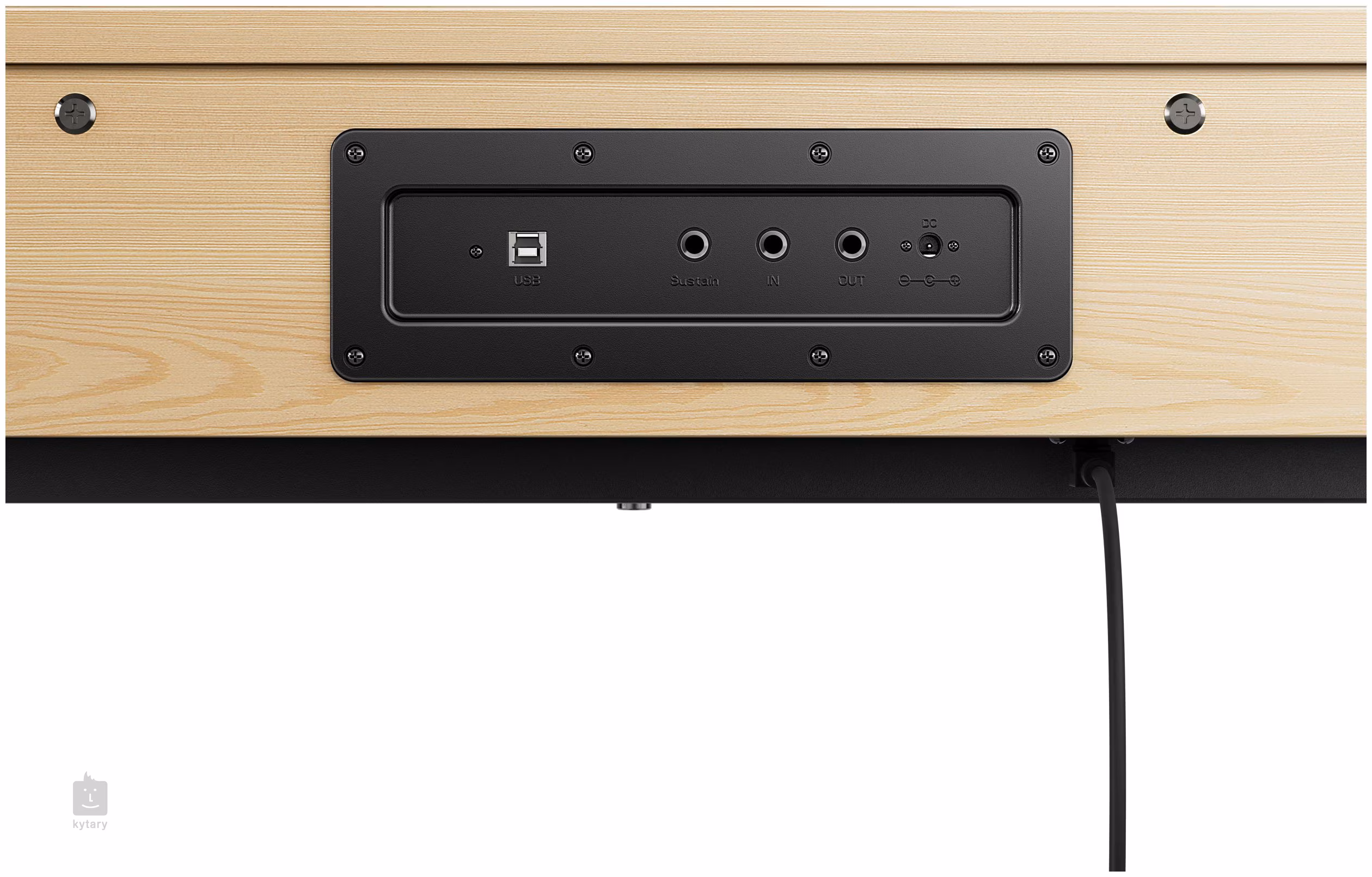 V designu piana se kombinuje světlé dřevo a černý kovový stojan. Výsledkem je unikátní minimalistický vzhled, který zaujme na první pohled a vynikne v každém interiéru. Díky kompaktním rozměrům a nízké hloubce klaviatury se navíc jedná o nástroj ideální i do menších prostor. Součástí balení je napájecí adaptér a stojanové nohy. Pokud hledáte kvalitní digitální piano pro začínající nebo pokročilé hráče, s tímto modelem zaručeně neuděláte chybu.