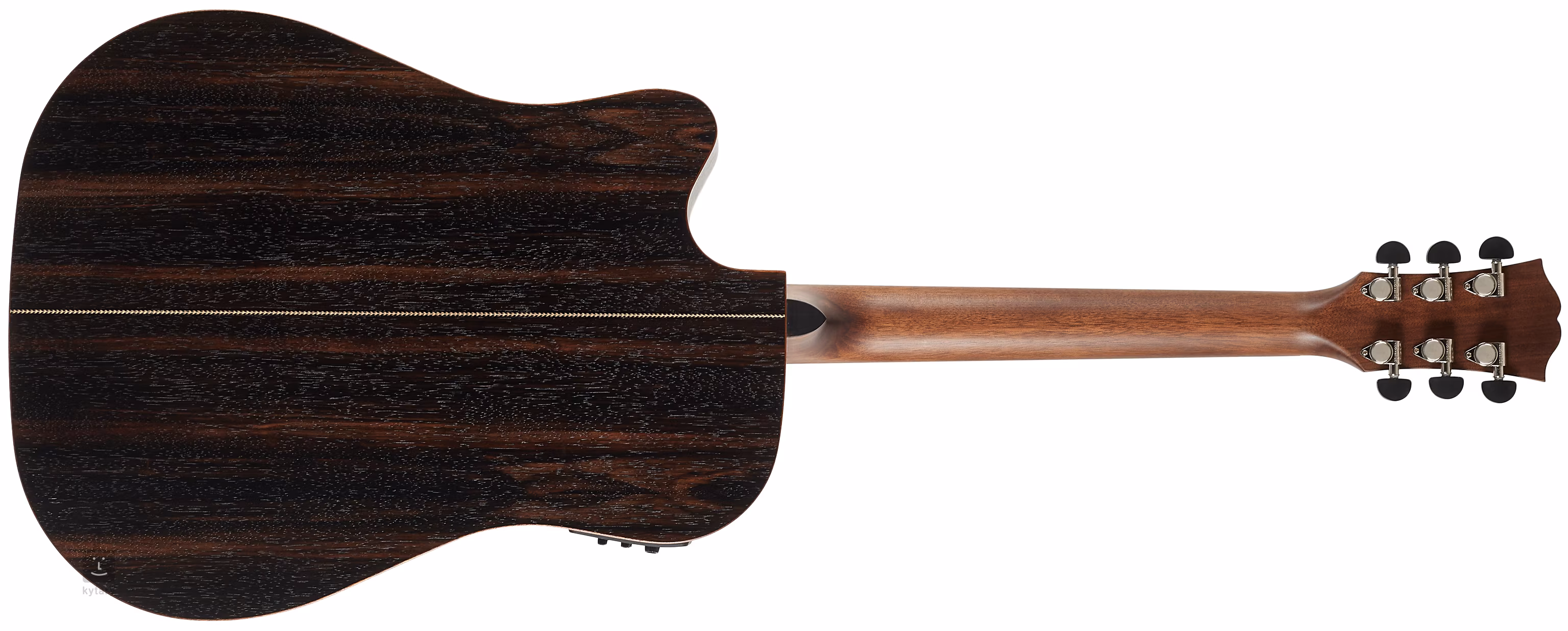 Ke krku ze dřeva nato, pro podobné vlastnosti označovaného jako “eastern mahogany”, je přilepen hmatník z ebonizovaného hardwoodu. Stabilitu ladění zaručuje uchycení strun přes nultý pražec z kosti v mechanikách značky Grover a kobylce z hardwoodu. Pěkné zpracování podtrhuje decentní barevná úprava "Lightburst" přední desky a detaily v podobě mahagonové obvodové lemovky těla, výložky topu a zadní desky ve vzoru rybí kosti (Herringbone), zdobné rozety, perleťového firemního loga na hlavici (Abalone) a perleťových teček na hmatníku.