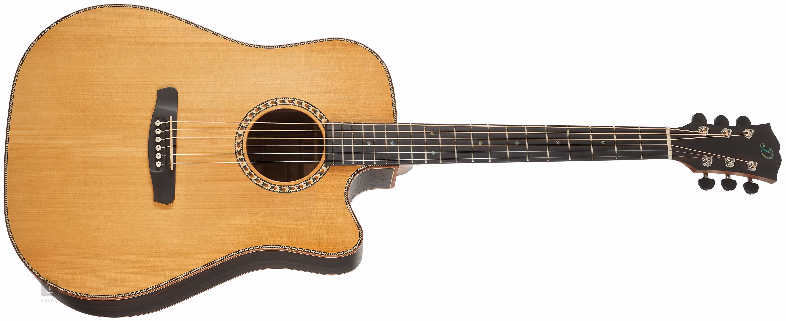 Ke krku ze dřeva nato, pro podobné vlastnosti označovaného jako “eastern mahogany”, je přilepen hmatník z ebonizovaného hardwoodu. Stabilitu ladění zaručuje uchycení strun přes nultý pražec z kosti v mechanikách značky Grover a kobylce z hardwoodu. Pěkné zpracování podtrhují detaily v podobě mahagonové obvodové lemovky těla, výložky topu a zadní desky ve vzoru rybí kosti (Herringbone), zdobné rozety, perleťového firemního loga na hlavici (Abalone) a perleťových teček na hmatníku.