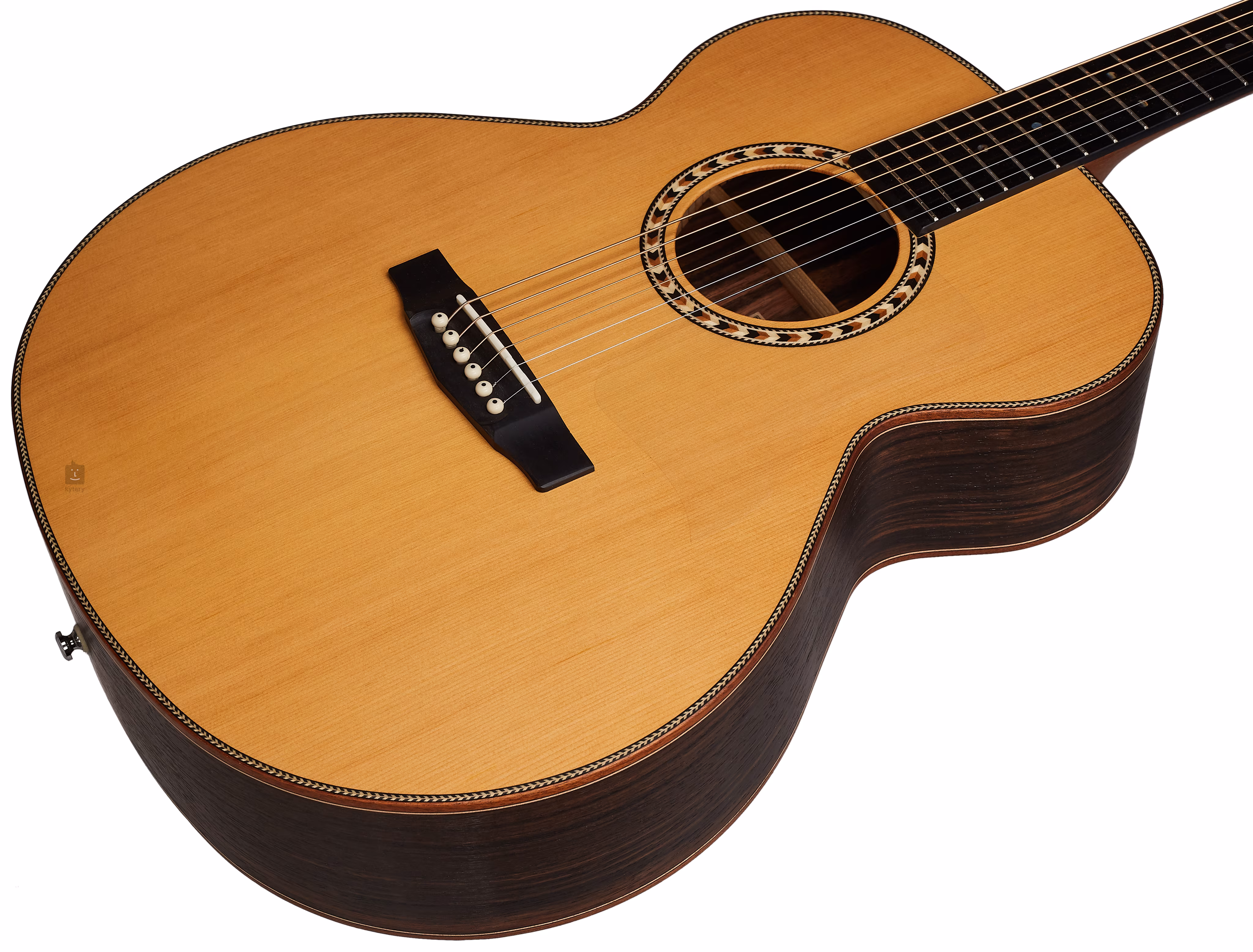 Ke krku ze dřeva nato, pro podobné vlastnosti označovaného jako “eastern mahogany”, je přilepen hmatník z ebonizovaného hardwoodu. Stabilitu ladění zaručuje uchycení strun přes nultý pražec z kosti v mechanikách značky Grover a kobylce z hardwoodu. Pěkné zpracování podtrhují detaily v podobě mahagonové obvodové lemovky těla, výložky topu a zadní desky ve vzoru rybí kosti (Herringbone), zdobné rozety, perleťového firemního loga na hlavici (Abalone) a perleťových teček na hmatníku.