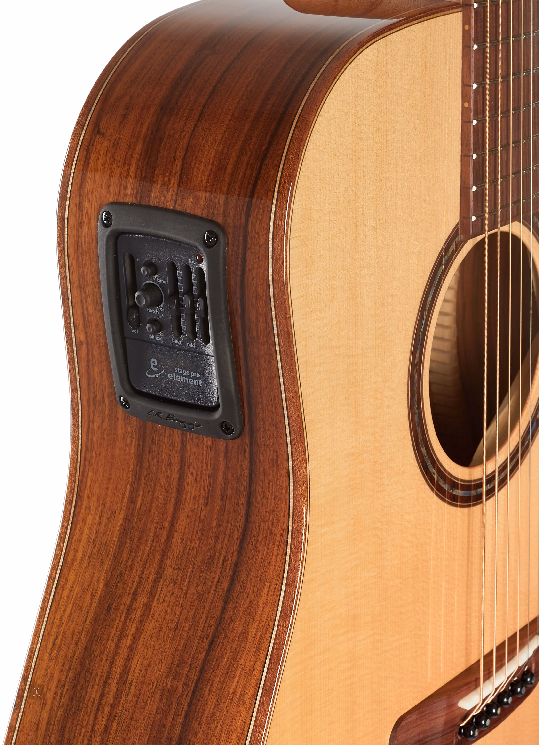 Elektronika L. R. Baggs StagePro Element představuje ideální řešení ozvučení akustických kytar. Preamp nabízí ovladač hlasitosti, zabudovanou ladičku, třípásmový ekvalizér a ovladače Notch Filter a Phase, kterými zkrotíte veškeré rušivé prvky a akustický zvuk nástroje tak vyzní v plné parádě.