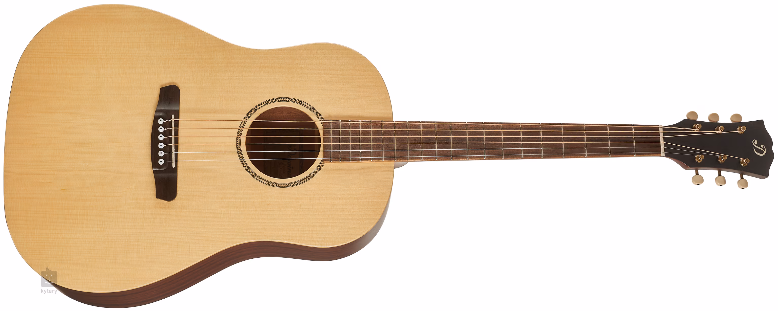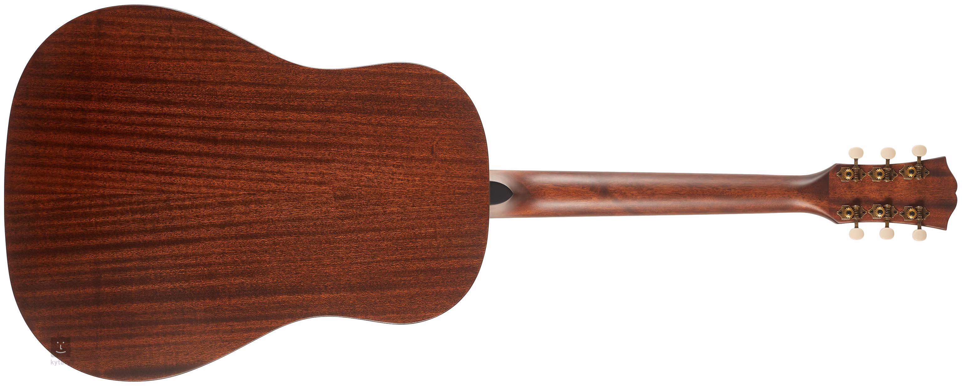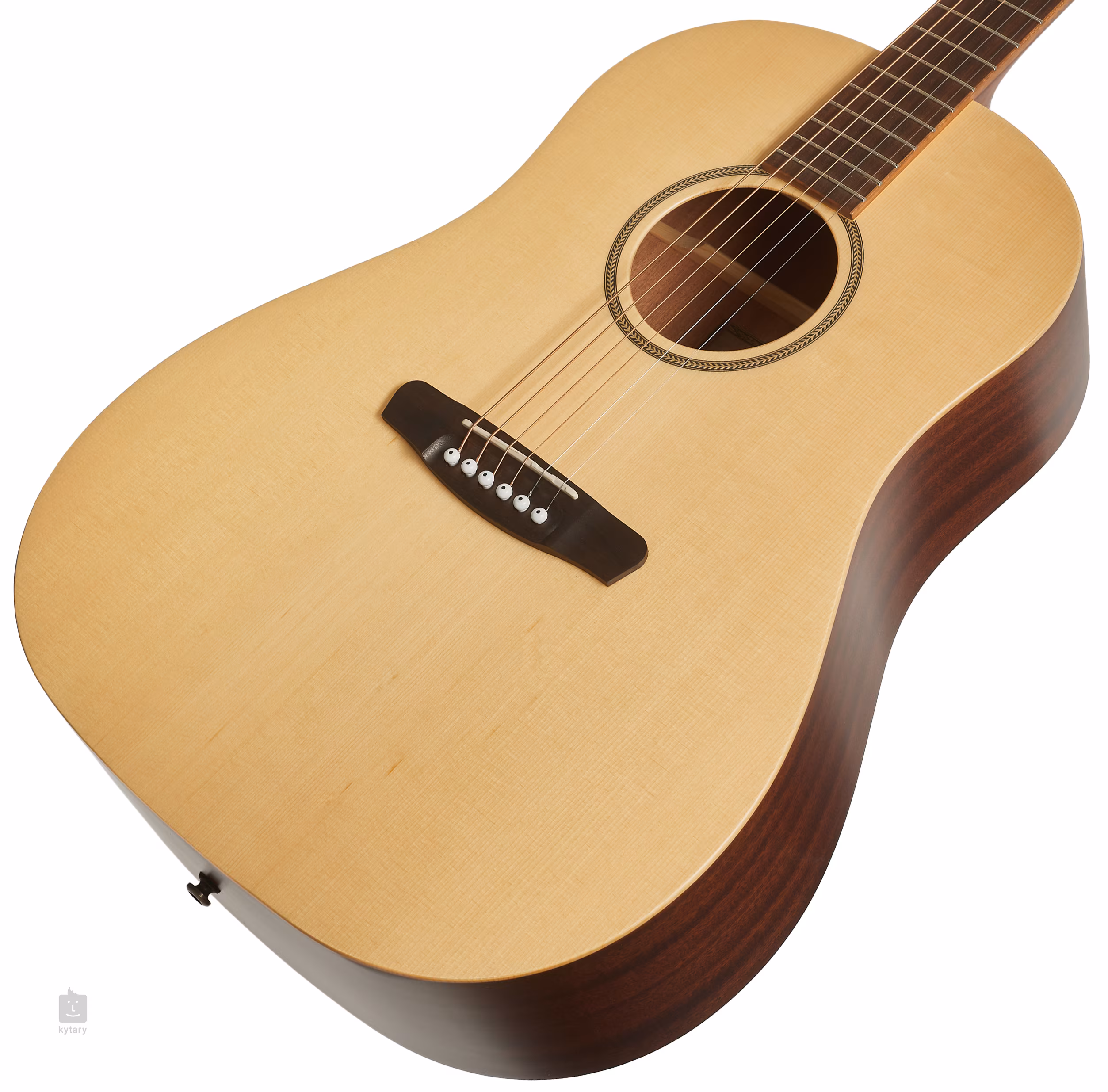 Struny jsou uchyceny v otevřených ladicích mechanikách Vintage Copper Grover a kobylce z pau ferro. Stylové zpracování podtrhuje rozeta ve vzoru rybí kosti (Herringbone).