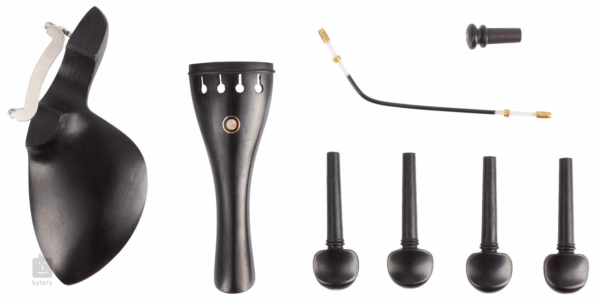 Garnitura z ebenového dřeva, pocházející od tradičního výrobce hudebních nástrojů Dowina. Je vhodná pro 4/4 housle, obsahem balení je struník, podbradek, ladící kolíčky a žalud.
