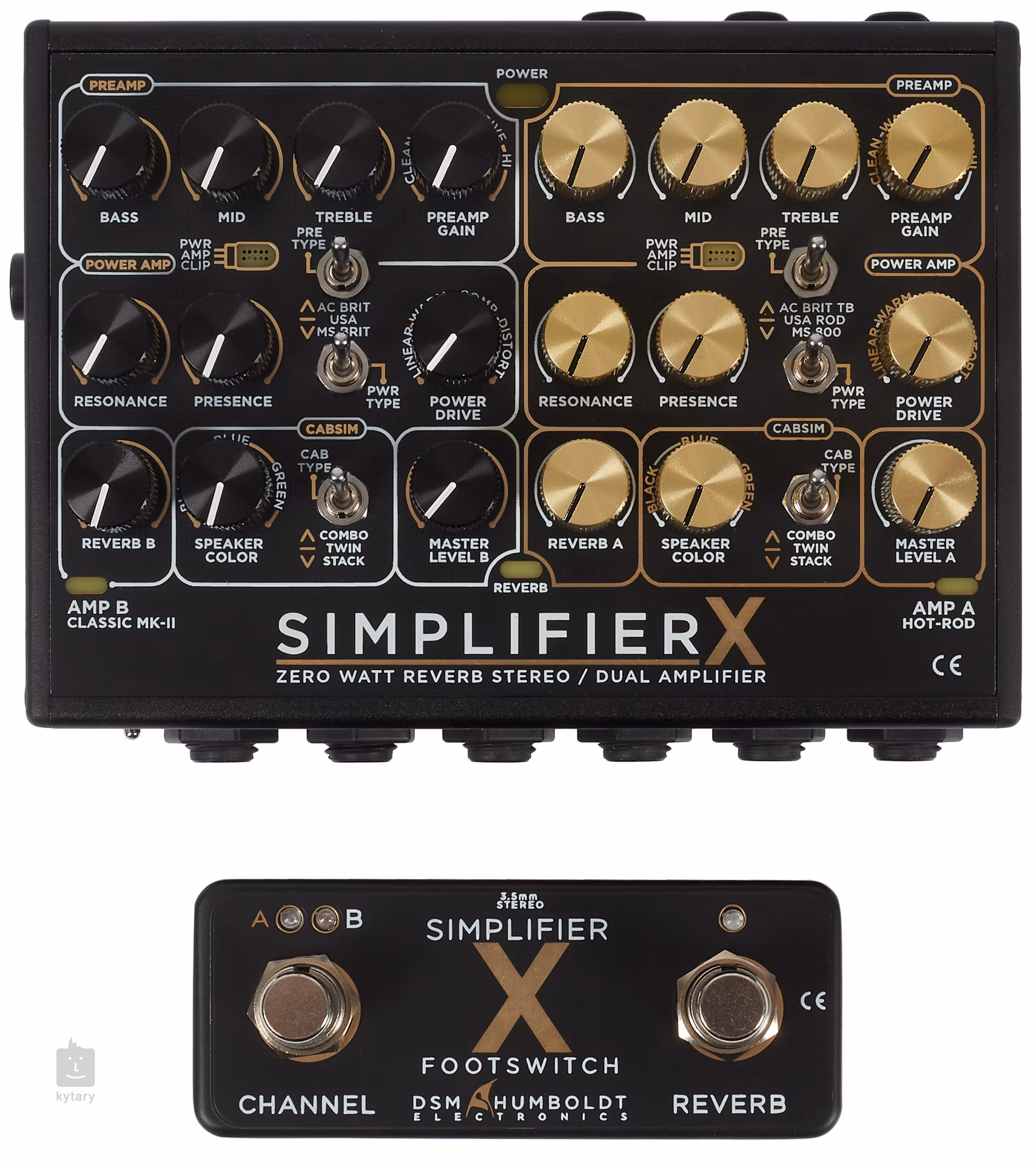 Simplifier X nabízí dvoukanálový analogový preamp s šesti voicingy kytarových aparátů, které zachycují do nejmenších detailů vlastnosti a charakteristiky těch nejlepších a nejpopulárnějších předzesilovačů na trhu. Amp A označený jako Hot-Rod obsahuje voicingy AC Brit TB, moderní americký zvuk USA Rod a řádně žhavé higher gain zvuky MS 800, Amp B obsahuje amp voicingy známé z předchozích verzí Simplifier pedálů, tj. zvuk a feel britské patnácti wattové klasiky AC Brit, “tweedy” USA voicing a rockový MS Brit.