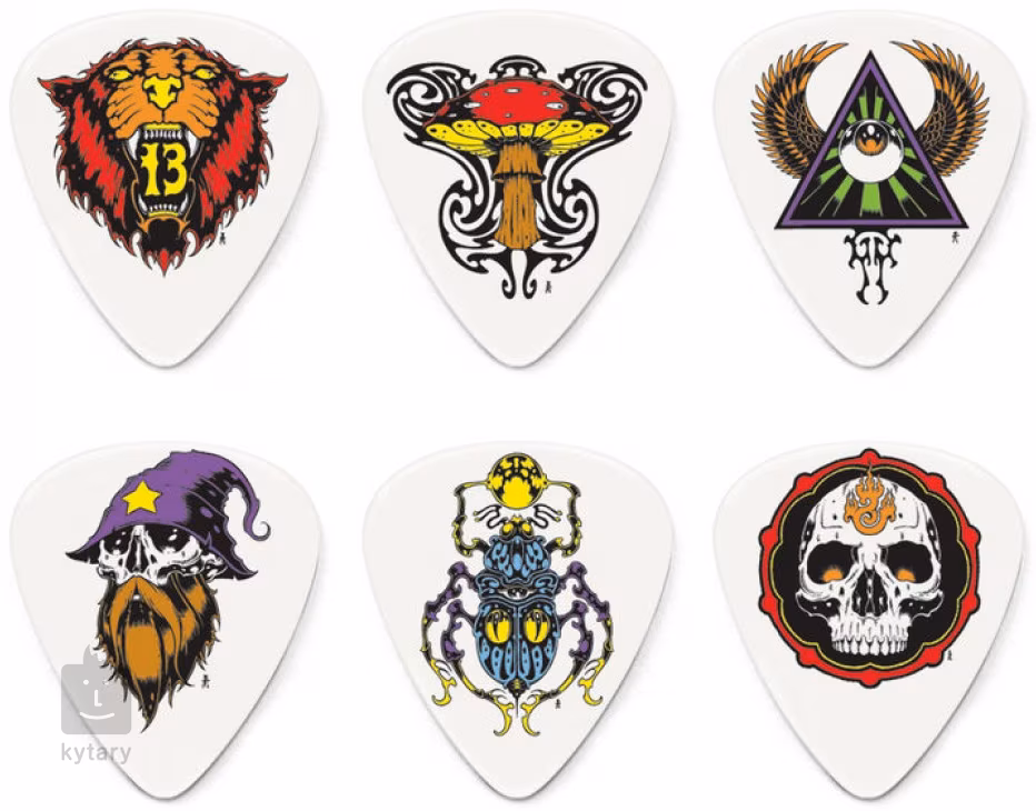 Alan Forbes je legendou grafického designu a jeho práci můžete znát z desítek obalů alb a koncertních plakátů. Tato sada kombinuje osvědčenou kvalitu trsátek Dunlop s nadčasovým designem.