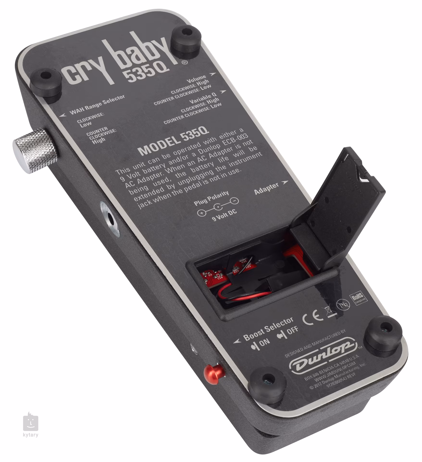 Dunlop Cry Baby 535Q Multi Wah je zapojen jako true hardwire bypass. K napájení je zapotřebí 9V baterie nebo 9V adaptér (není součástí balení).