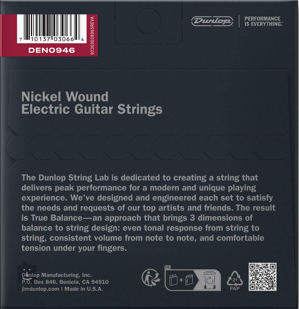 Struny pro elektrické kytary značky Dunlop z řady Nickel Wound jsou vyráběny v kalifornském městě Benicia, kde mají skvělý recept na precizně zpracované struny vyrobené z těch nejkvalitnějších materiálů. Jsou vinuté poniklovanou ocelí a jejich zvuk je charakteristický pro frekvenčně vyvážený tón, který se uplatní téměř v jakémkoliv hudebním žánru. Ať už hrajete rock, pop, metal, blues nebo country, tyto struny vás zaručeně podrží. Zároveň vynikají pevností, flexibilitou a pohodlnou hratelností. Struny jsou baleny pomocí technologie VCI Fresh Technology, abyste měli jistotu, že je dostanete tak čerstvé jako v den, kdy byly vyrobeny.