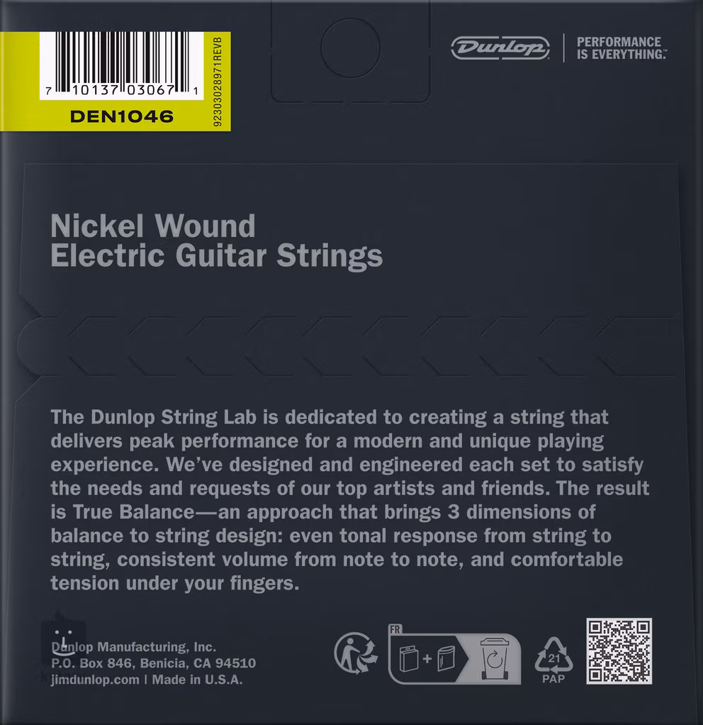 Značku Dunlop snad ani není třeba představovat. Tato kalifornská společnost se již od šedesátých let zaměřuje na výrobu kytarového příslušenství – efektů, kapodastrů, slidů, strun a zejména kytarových trsátek. Jedná se o zlatou stálici na trhu, která zaručeně patří mezi ty nejlepší. Od jejich strun tak můžete očekávat tu nejvyšší možnou kvalitu.