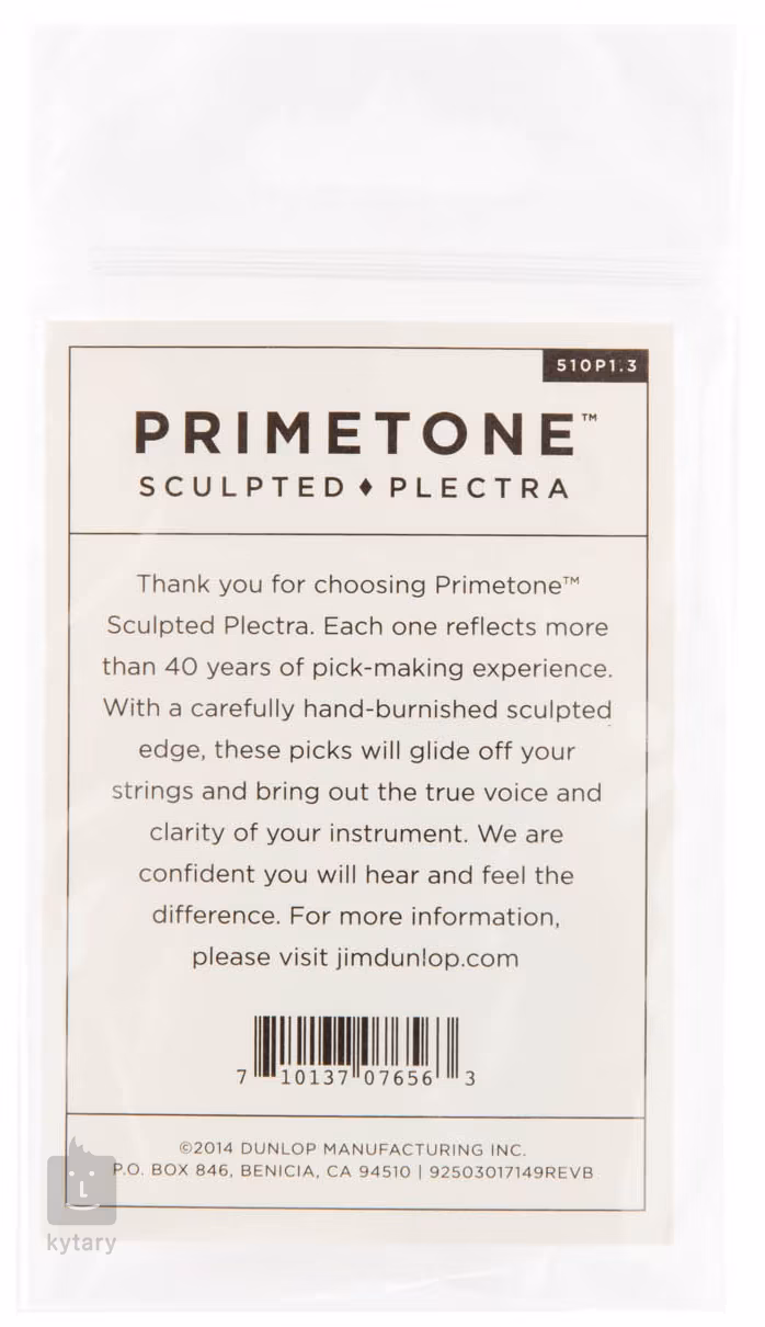 Trsátka z řady Dunlop Primetone poskytují díky ručně broušenému zkosenému okraji nízký odpor při hraní, takže jsou schopna zvýšit vaši rychlost a zlepšit vám artikulaci. Zároveň jsou vyrobena z materiálu ultem, díky němuž poskytují přirozený zvuk a extrémní odolnost. Jejich povrch je opatřen jemným, protiskluzovým gripem pro pevný, neklouzavý úchop. Pokud hledáte trsátka, která jsou precizně zhotovena podle požadavků aktivních kytaristů, nemusíte hledat dál.