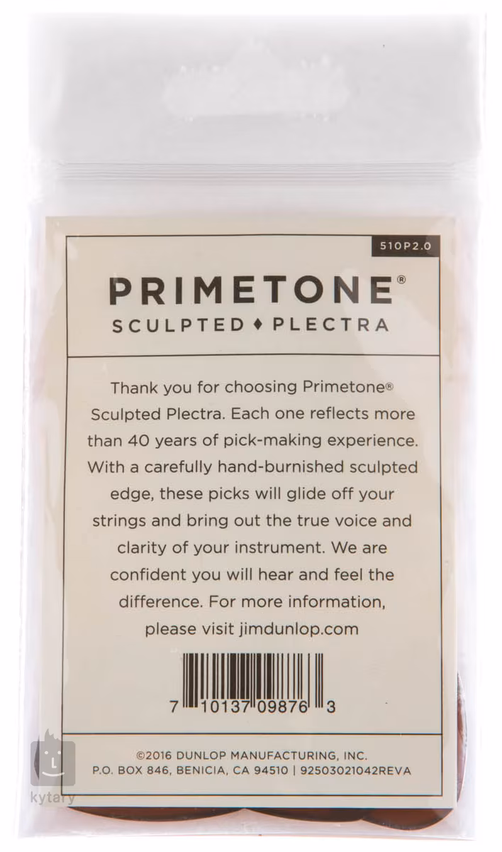 Trsátka z řady Dunlop Primetone poskytují díky ručně broušenému zkosenému okraji nízký odpor při hraní, takže jsou schopna zvýšit vaši rychlost a zlepšit vám artikulaci. Zároveň jsou vyrobena z materiálu ultem, díky němuž poskytují přirozený zvuk a extrémní odolnost. Jejich povrch je opatřen jemným, protiskluzovým gripem pro pevný, neklouzavý úchop. Pokud hledáte trsátka, která jsou precizně zhotovena podle požadavků aktivních kytaristů, nemusíte hledat dál.
