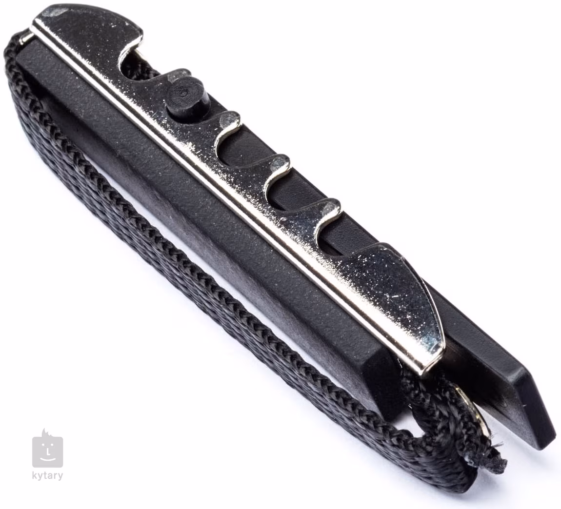 Tento kapodastr s poniklovaným povrchem je vhodný pro nástroje s plochým hmatníkem. Nepoškodí povrch kytary, díky nízkému profilu nebude překážet vašim prstům při hře. Nastavením délky popruhu uzpůsobíte kapodastr profilu krku nástroje.