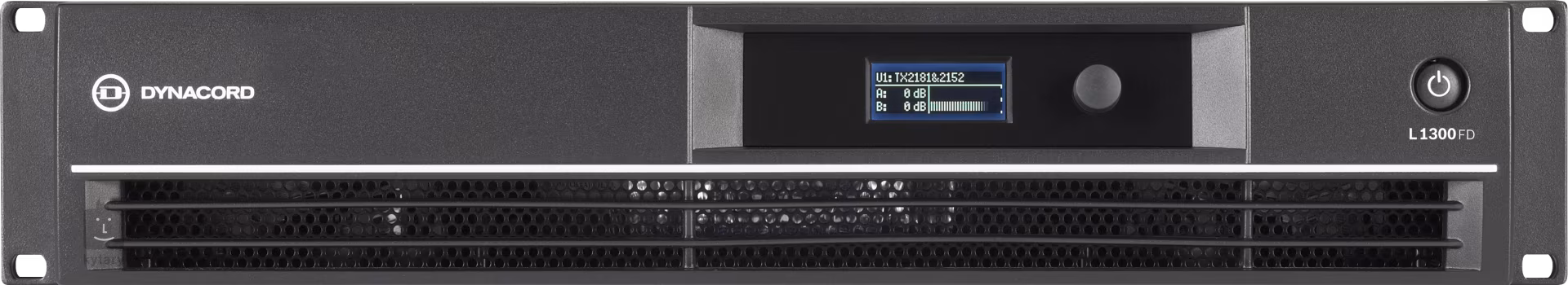 Dynacord L1300FD je koncový dvoukanálový zesilovač o výkonu 2 x 650 W s DSP jednotkou určený pro živá vystoupení.