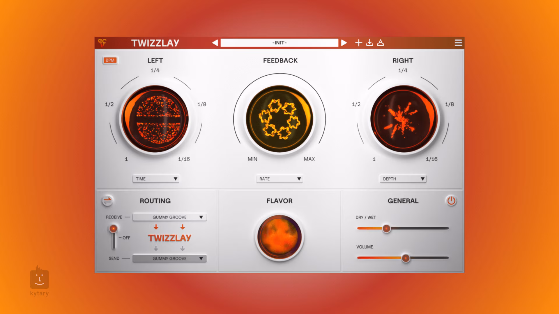 Ear Candy Twizzlay je moderní ping-pong delay, který kromě přidání prostorové hloubky a pohybu okoření váš zvuk exkluzivním laděním Flavor a zefektivní váš pracovní postup pomocí funkce Routing. Pozvedněte svůj zvuk bez námahy pomocí Twizzlay a díky kontrole nad funkcemi Left Delay, Feedback a Right Delay. Tyto parametry jsou pro ping-pong delay stěžejní a dávají vám možnost jemně vyladit načasování a intenzitu ozvěny, která se odráží mezi kanály.