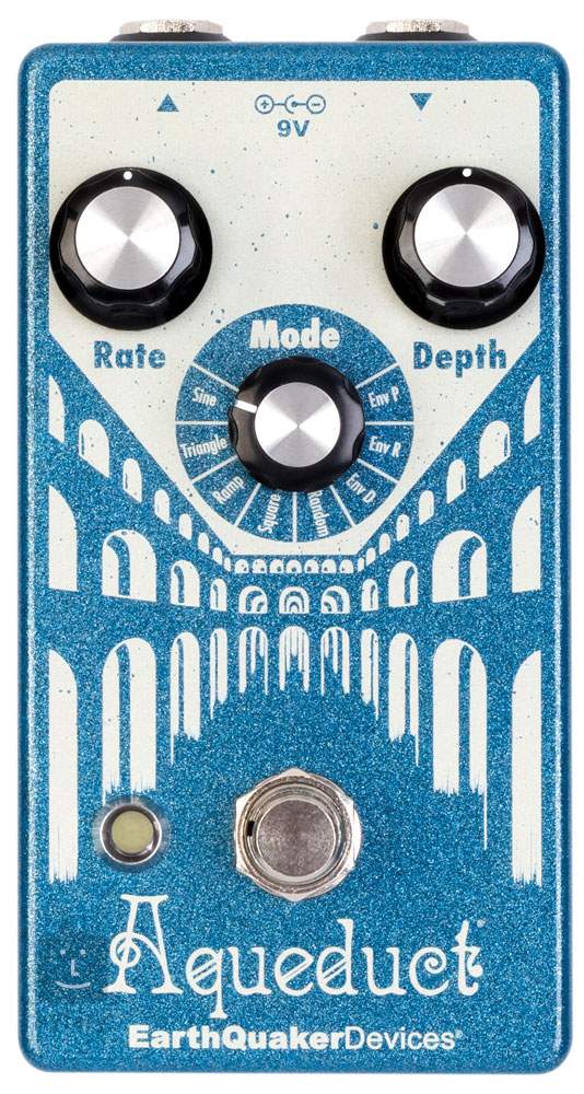 Aqueduct je vintage zvuky inspirovaný pitch vibrato efekt s osmi modulačními mody. Je vám tak schopen nabídnout širokou škálu modulačních zvuků vystavených na změně ladění - parádní až syntezátorové zvuky s charakterem pulzního sonaru, dotykově citlivou frekvenční modulaci, pseudo-flange efekty, jemné vlnění zvukové vlnění i extrémní změny intonace a ohýbání tónu. Vše, co si vymyslíte, ať už muzikální nebo zcela náhodné/experimentální zvuky. Osmipolohový přepínač doplňují standardní ovladače určující rychlost a intenzitu efektové modulace.