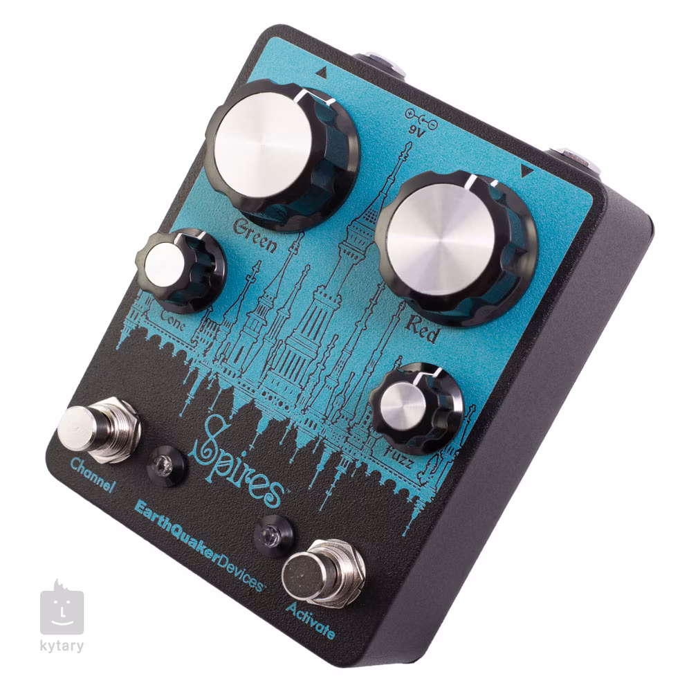 Spires v sobě skrývá dva samostatné fuzz pedály. Zelený kanál vychází z originálního Rosac Electronic Nu-Fuzz, který byl poprvé uveden roku 1968. K ovládání jeho zvukové charakteristiky slouží knob Tone a sílu výstupu reguluje knob Green. Červený kanál je fuzz Dream Crusher přímo z produkce EarthQuaker Devices. Výstupní hlasitost je pod kontrolou potenciometru Red a ovladač Fuzz diktuje míru zkreslení. Pedál je true-bypass a k napájení slouží volitelný 9 V adaptér.