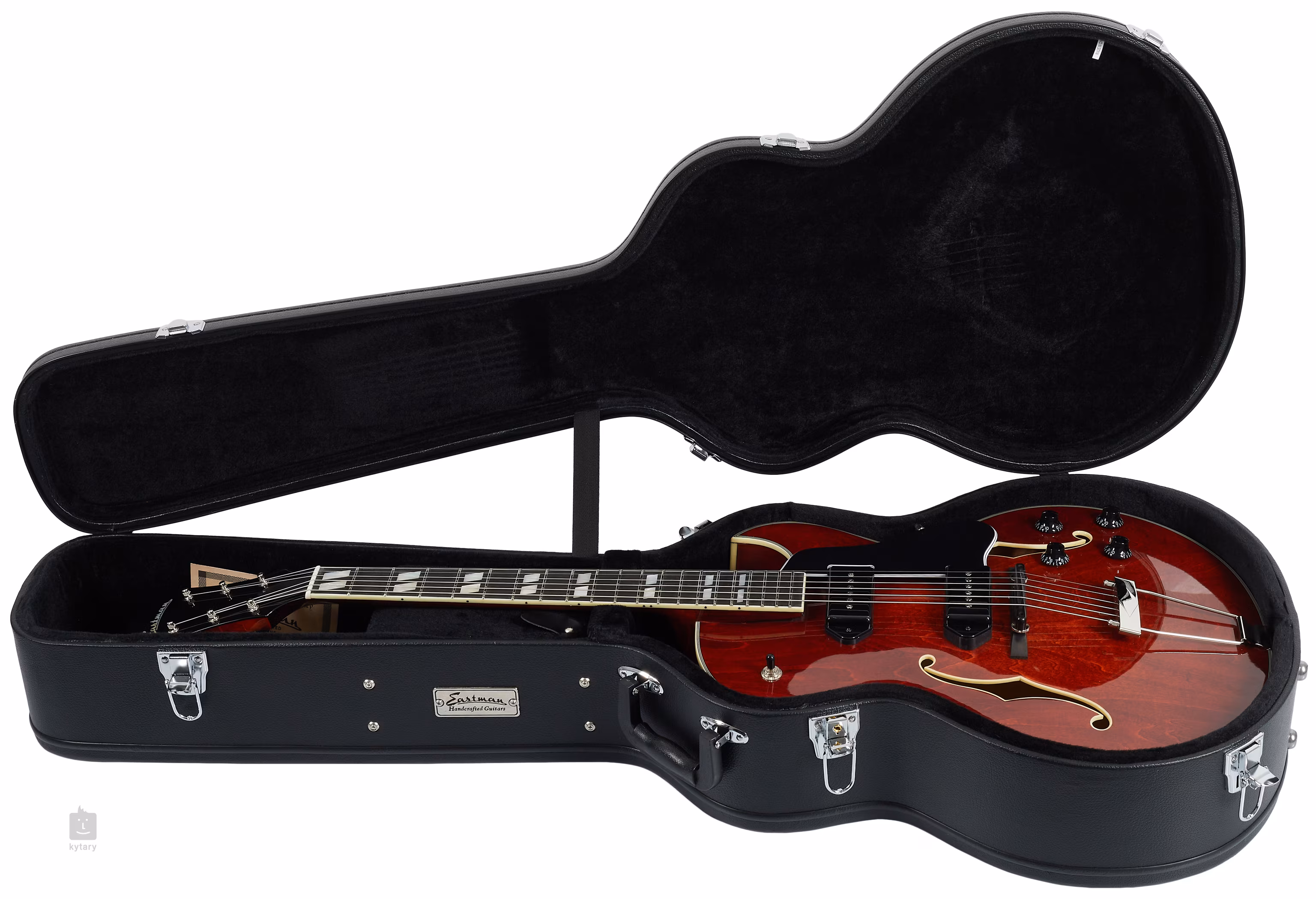 Eastman AR372CE-P90 je lubová elektrická kytara ve stylu ceněných “jazz box” lubovek ES-175. Tělo kytary je zhotoveno z laminovaného javoru. Ke krku ze tří kusů javoru je přilepen ebenový hmatník osazený dvaceti pražci velikosti Medium Jumbo. Orientaci na hmatníku usnadňují perleťové polohové bloky (Split Block).