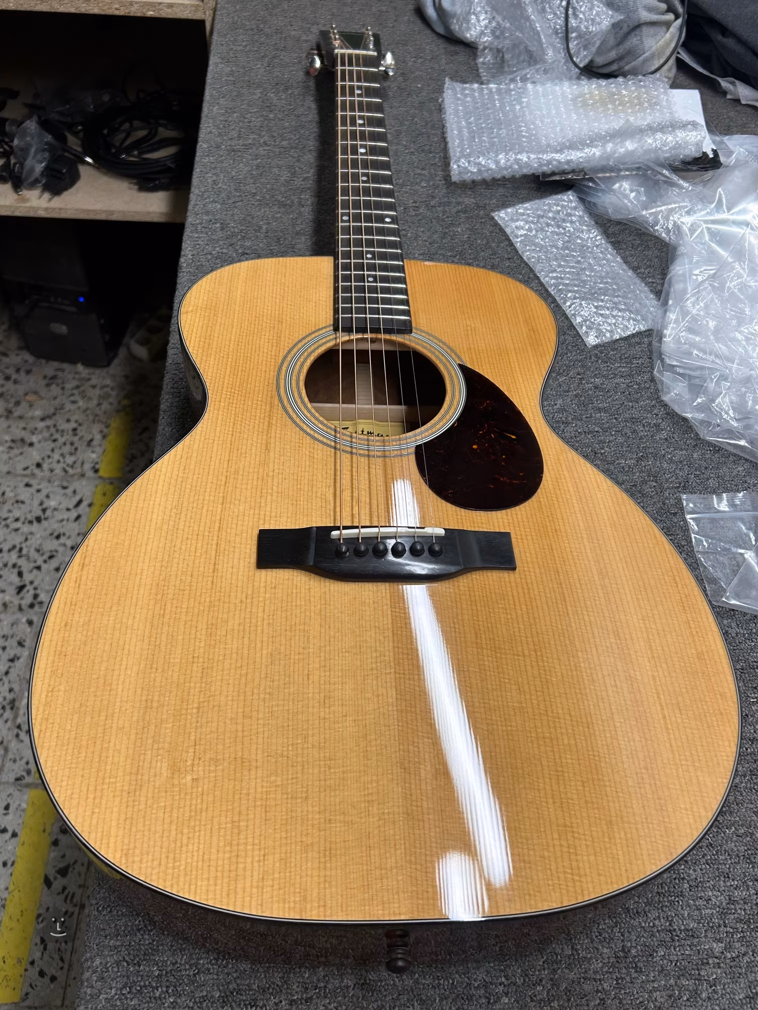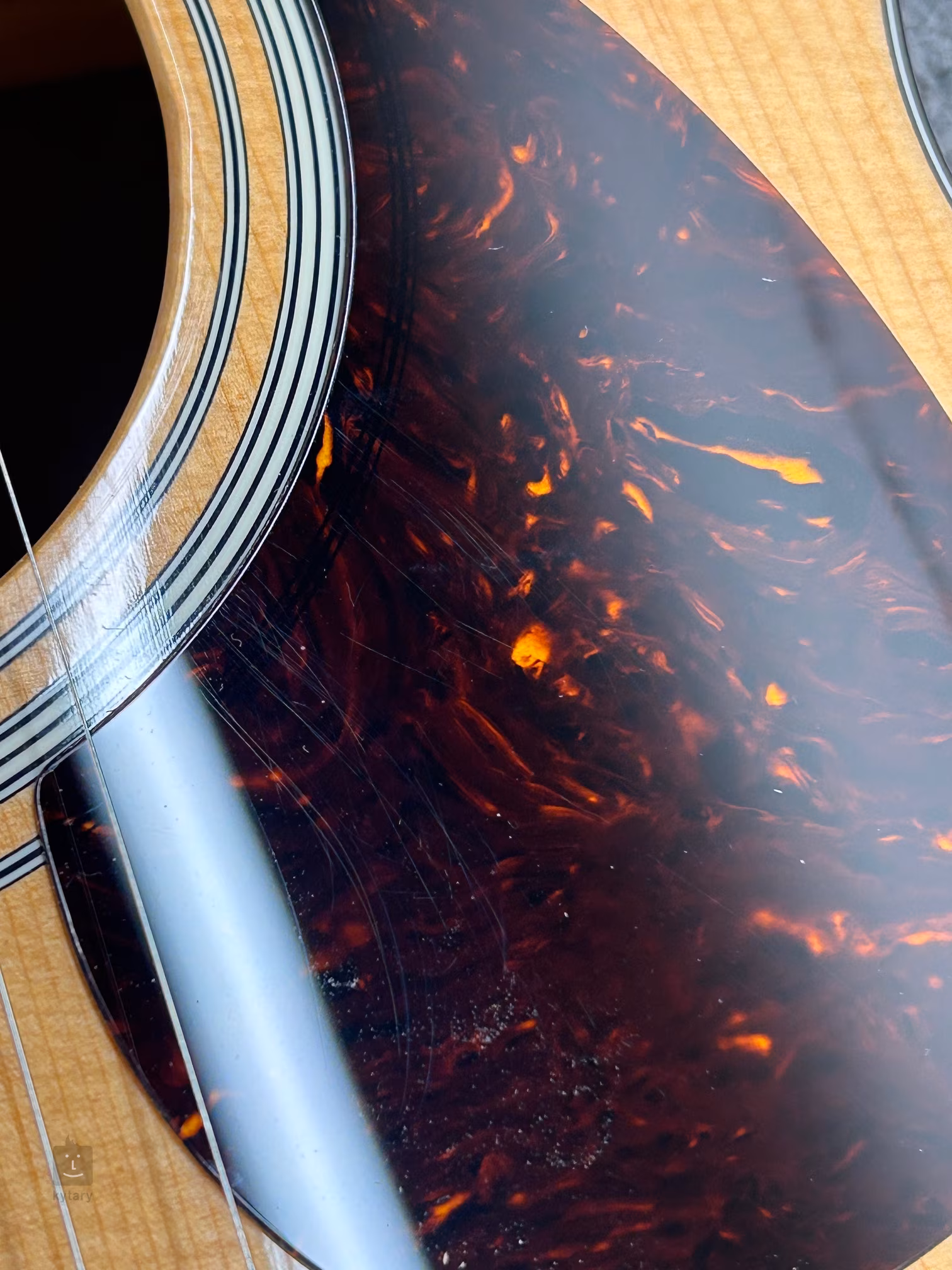 Struny jsou přes nultý pražec z kosti uchyceny v ladících mechanikách Gotoh SE780-06M-N a ebenové kobylce. Pěkné zpracování podtrhuje oboustranná obvodová lemovka těla a pickguard z imitace želvoviny a perleťové firemní logo na hlavici.