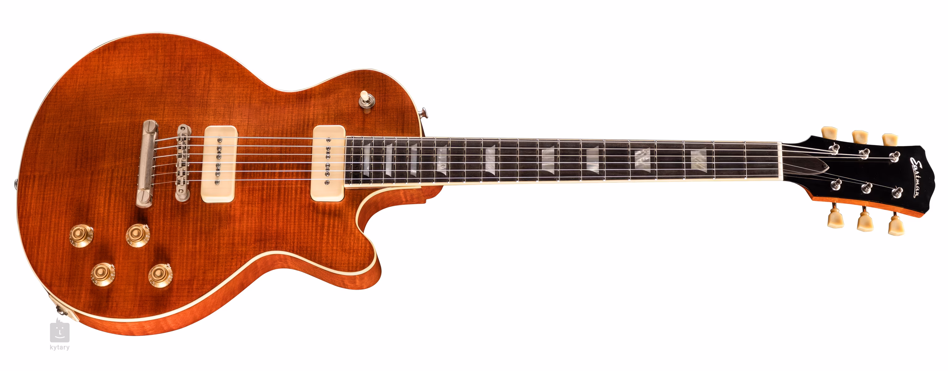 Dva P90 snímače v soapbar designu (Lollar Custom Aged/Wound Soapbar P-90) poskytují kytaře vřelý plný a zároveň artikulovaný zvuk, který si spojíte s většími single-coil snímači z konce 50. let. Charakter zvuku upravíte pomocí standardních ovladačů. Struny jsou uchyceny v ladicích mechanikách Gotoh a přes kobylku Gotoh GE-104B-NI Relic ve struníku téže značky. Pěkné zpracování podtrhuje lemovka topu a hmatníku z imitace slonoviny, hardware s jemnými prvky patiny (Antique Nickel) a perleťové firemní logo na hlavici.