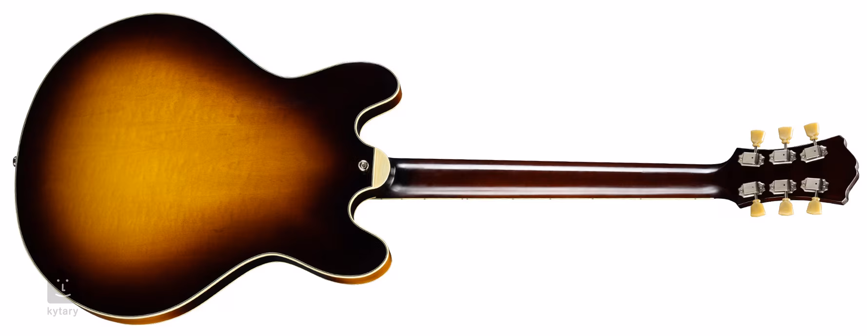 Dva P90 snímače v dogear designu (Lollar Dog Ear P90) poskytují kytaře vřelý plný a zároveň artikulovaný zvuk, který si spojíte s většími single-coil snímači z konce 50. let. Charakter zvuku upravíte pomocí standardních ovladačů. Struny jsou uchyceny v ladicích mechanikách Gotoh SD90 Relic a přes TOM style kobylku Gotoh ve struníku. Pěkné zpracování podtrhuje barevný finiš Sunburst podpořený lesklým lakem s jemným nádechem patiny (Truetone Vintage Gloss), oboustranná lemovka těla a hmatníku z imitace slonoviny, černý lemovaný pickguard a perleťové firemní logo na hlavici.
