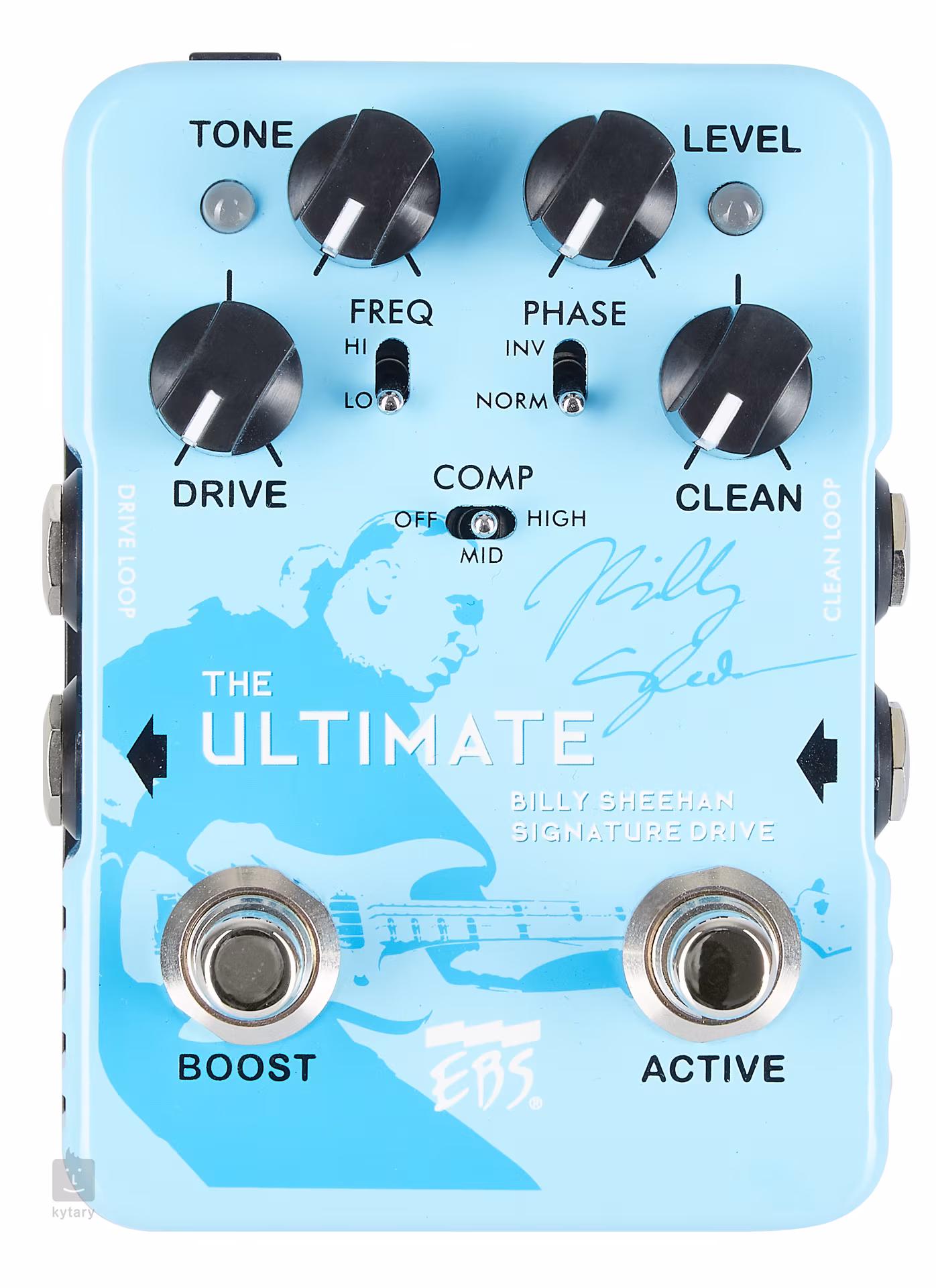 Švédská firma EBS a baskytarová světová jednička Billy Sheehan (UFO, Mr. Big, Steve Vai) se spojili, aby vytvořili univerzální a flexibilní baskytarový efekt, který využijete pro všechny hudební styly, ať už hrajete funky, pop, jazz nebo metal. Dvoukanálový Ultimate Pedal nabízí všechno, co baskytaristi potřebují. V jedné robustní šasi tak naleznete kompresor, distortion, potenciometr Tone nebo Blending. Váš signál můžete dále upravit pomocí frekvenčního filtru Hi/Low a přepínačem Phase. Pokud vlastníte baskytaru se dvěma výstupy jako Billy Sheehan, lze využít i této prémiové vychytávky.