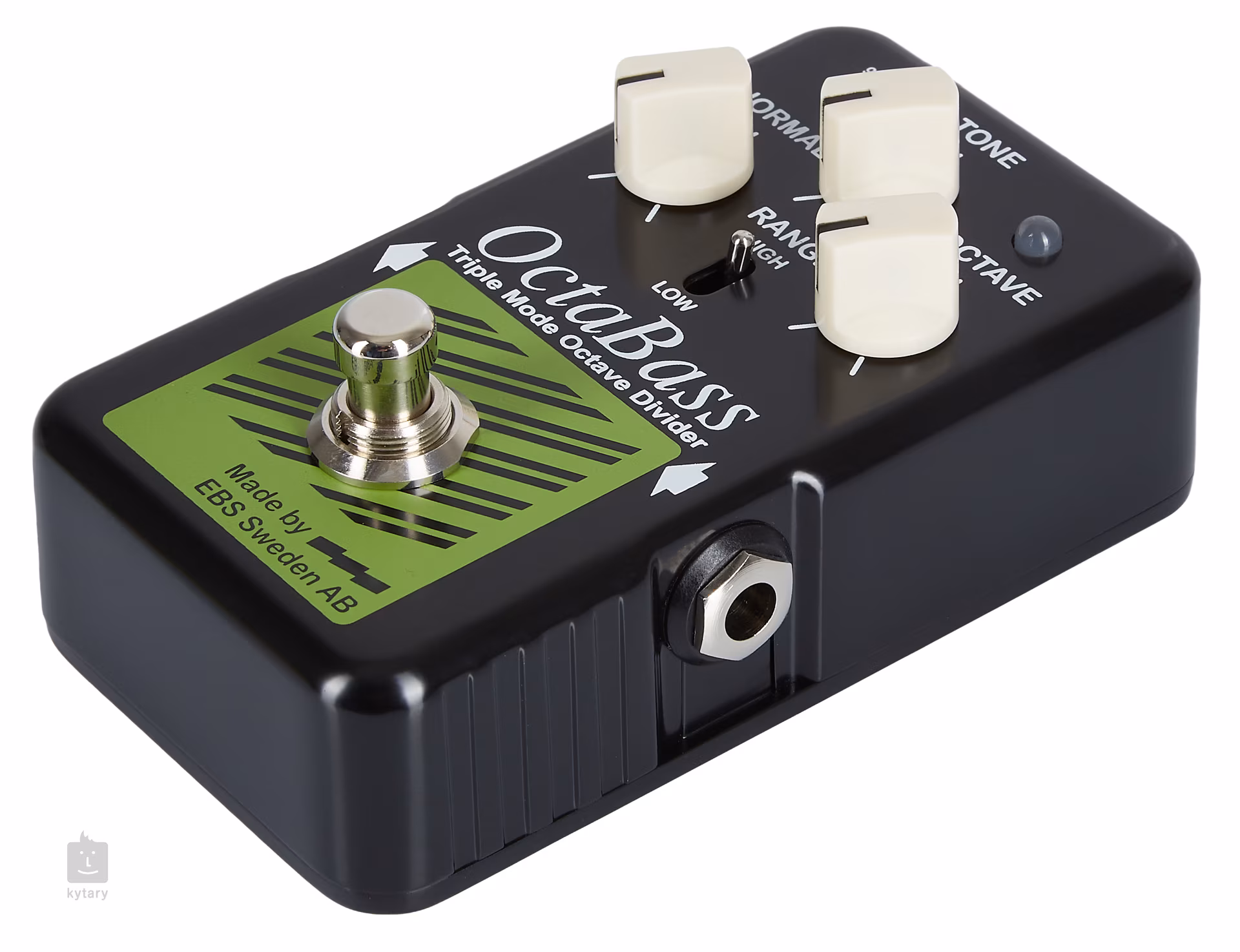 Analogový pedál EBS OctaBass Blue Label je nový model oktávového děliče, který neuvěřitelně rychle dokáže k hranému tónu přiřadit tón o oktávu níž. Velmi dobře stíhá rychlá rytmická dělení bez ohledu na techniku hry. OctaBass je vybaven třemi frekvenčními pásmy, ve kterých přiřazená oktáva hraje a nese svůj osobitý charakter. Nastavení High dává zdravý, nejvíce syntetický zvuk vhodný pro sólovou hru (baskytara, kytara), pozice Mid je klasický octaver ideální pro všechny druhy baskytar. Pozice Low přidává Vašemu zvuku extra hladké sub-basy, vhodná, pokud si přejete hrát se zvukem, obohaceným o nízké harmonické kmitočty, beze změn na vašem původním zvuku. Je velmi dobrým pomocníkem pro zvýraznění groove.