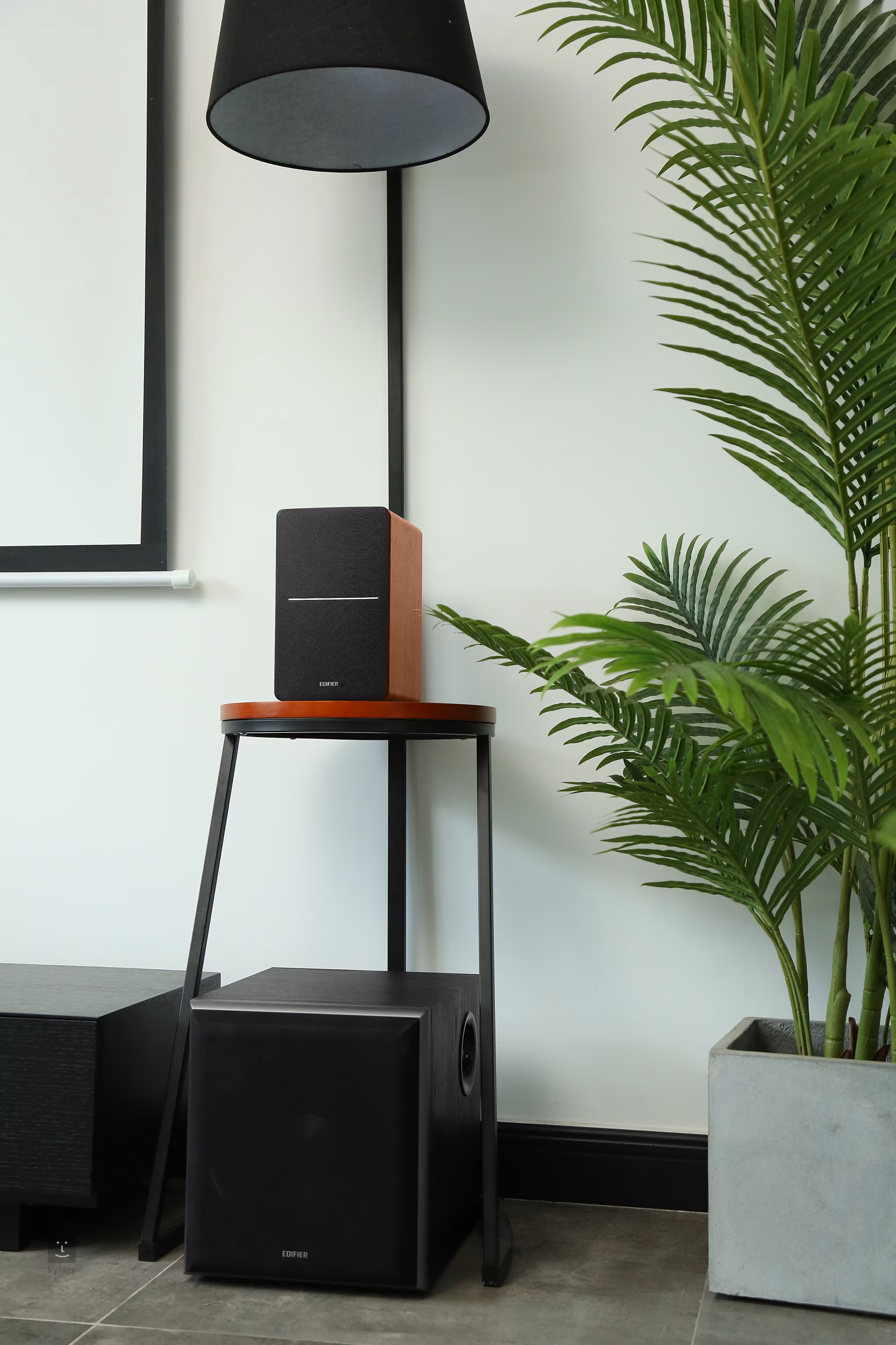 2.1 ready R1280DBs obsahuje výstup pro připojení subwooferu. Můžete tak velmi snadno stávající sestavu posílit zakoupením subwooferu ze stejné řady a získat tak stylový 2+1 systém.