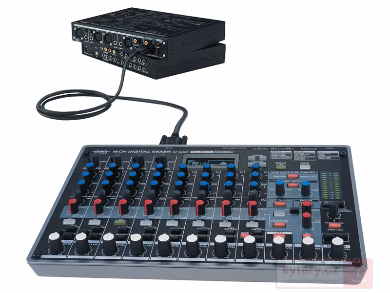The new M-16DX is a breakthrough all-digital mixer and audio interface, with an unprecedented low price. Unlike analog mixers, the 24-bit/96kHz M-16DX offers powerful features such as high-resolution EQ, scene memories, and EDIROL’s innovative Room Acoustic Control. The M-16DX is a perfect front-end for your favorite Digital Audio Workstation (DAW), allowing you to record a track at a time or a whole band at once. It’s great for live mixing, too, with its compact and convenient two-piece design that allows you to put your connections onstage and your mixer wherever you want.