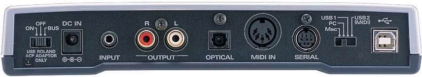 digitální S/PDIF výstup, pro připojení k počítači nebo jinému modulu, syntezátoru či masterkeyboardu je k dispozici seriový a MIDI port