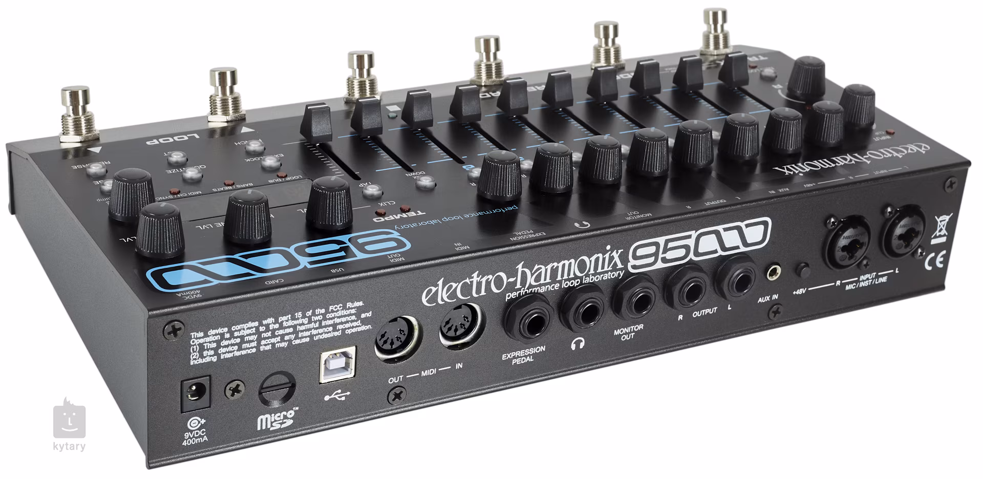 95000 Performance Loop Laboratory od americké společnosti Electro-Harmonix je špičkově vybavený multi-looper, který vám umožní nahrát několik nástrojových či vokálních stop a vytvořit tak komplexní vrstvenou skladbu. Jedná se o zařízení ideální pro každého kreativního multiinstrumentalistu, buskera či skladatele, který si nevystačí s výbavou základních looperů. Zařízení nabízí šest samostatných stop a je vybaveno ovládacím panelem pro základní mixování, takže vám umožní nastavit hlasitost a panorama každé stopy.